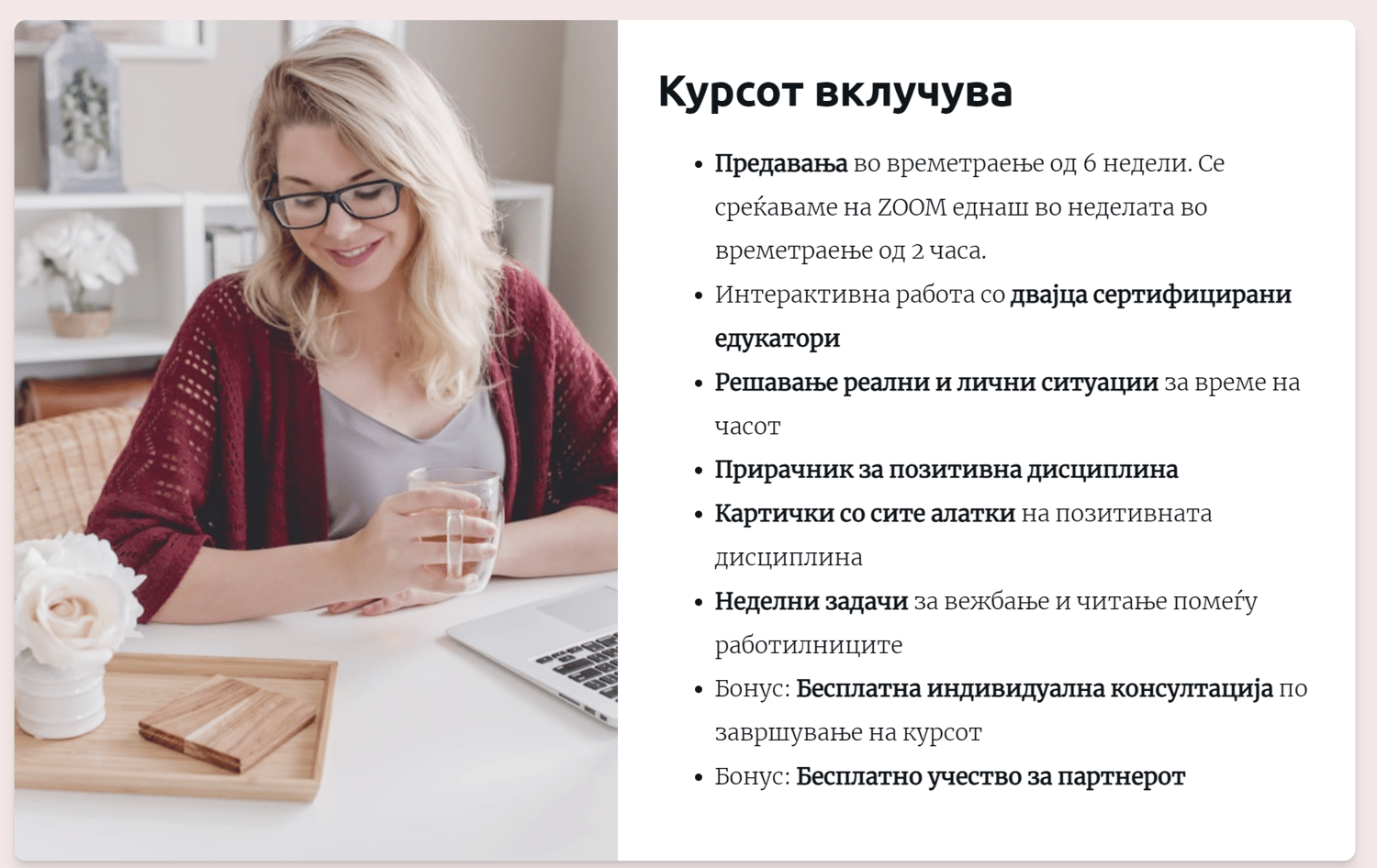 - Бонус: Бесплатна индивидуална консултација по завршување на курсот