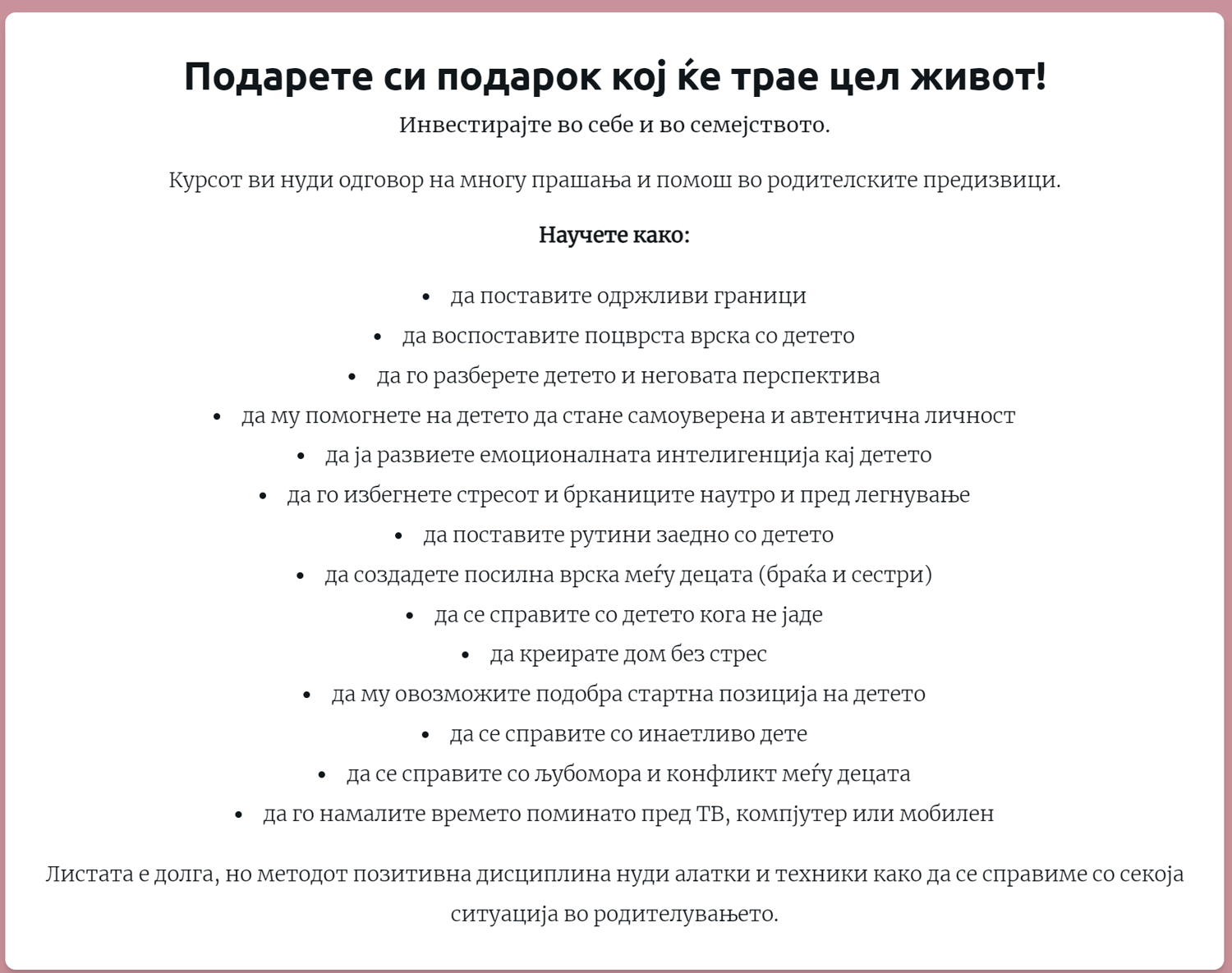 - Прирачник за позитивна дисциплина на повеќе од 100 страници