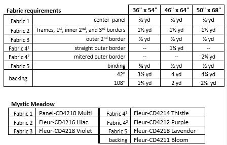 Take a panel, cut it up, and sew strips of fabric between the pieces to create frames and give a view surrounded by the mountains in the pieced border. If you don’t have a panel to use, fussy cut a large scale print to fill the spaces. All the sizes are the same up through the pieced border.