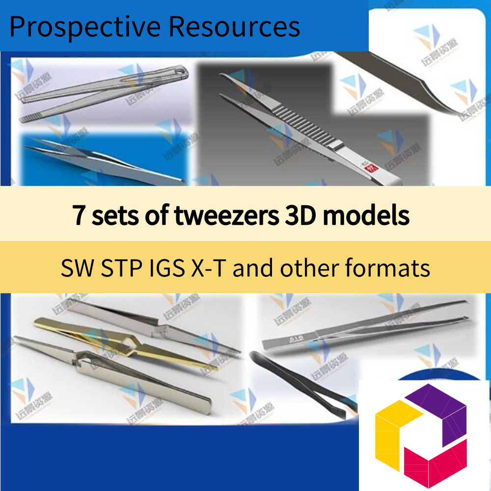 7 sets of 3D models of tweezers, anti-static tweezers 3D drawings