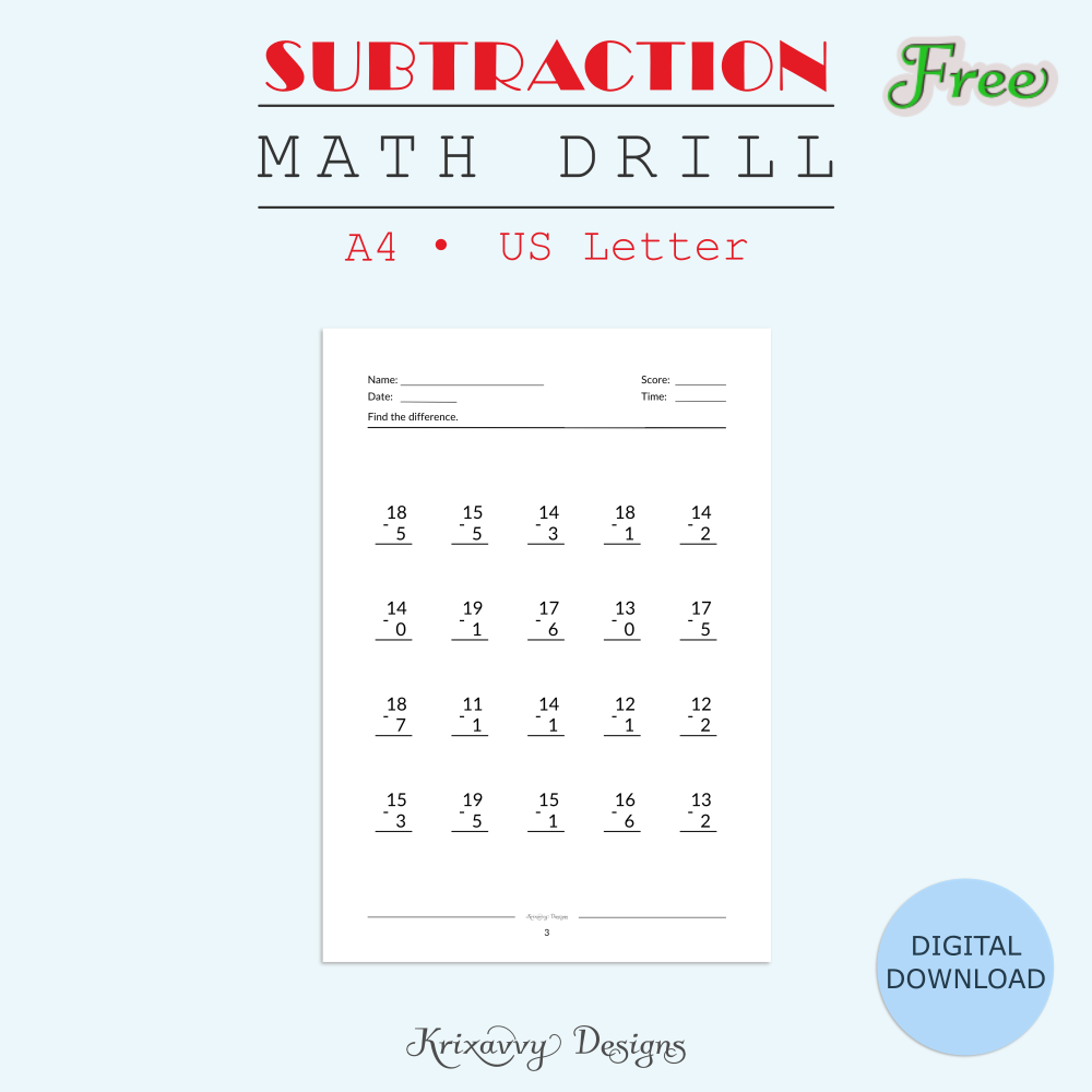 *Free Printable Subtraction Worksheet "Find the Difference"