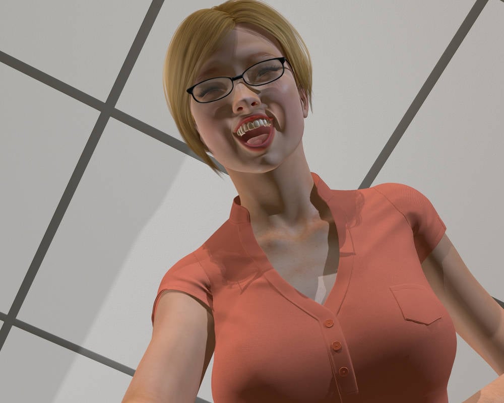In a drunken daze, Antonio followed Daniela down the street to her apartment building. He looked like he was about to pass out, but Daniela's ample bosom kept his attention. She led him inside and up to her top floor lab.