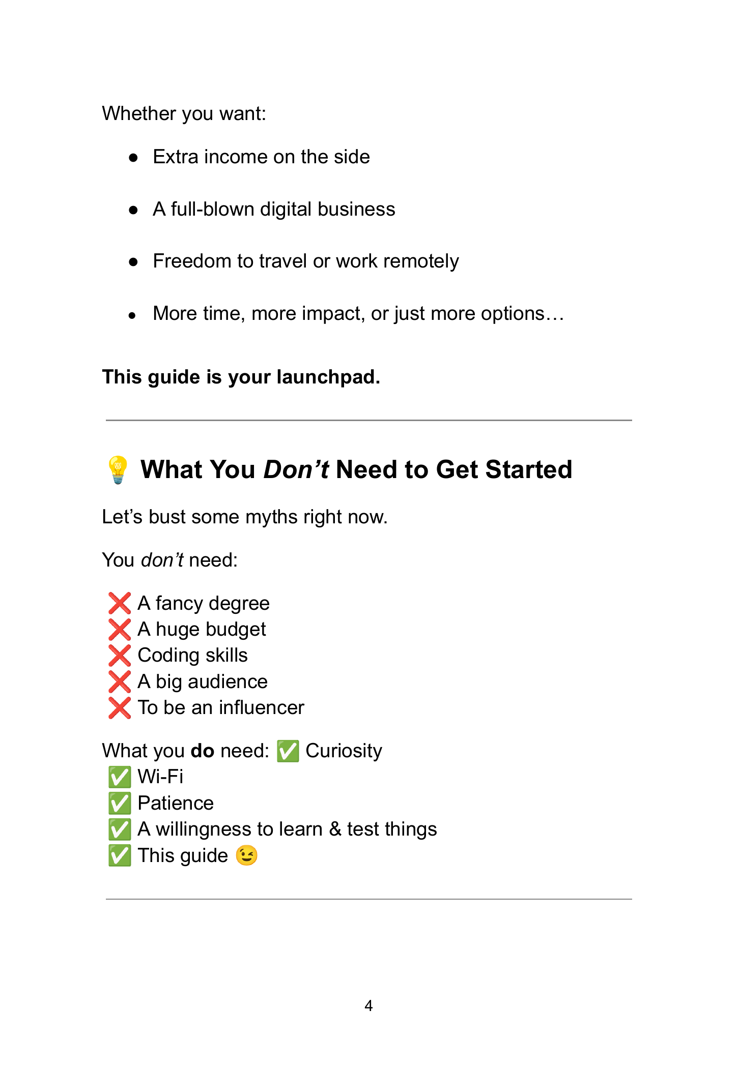 Are you tired of the 9-5 grind and looking for ways to make money online? Look no further than our e-book "Make Money Online - Let´s get Started". Packed with valuable information and actionable tips, this e-book will guide you through the process of starting your online money-making journey. Whether you're interested in freelance work, e-commerce, or affiliate marketing, this e-book covers it all. Don't wait any longer to start earning money from the comfort of your own home - get your copy of "Make Money Online - Let´s get Started" today.
