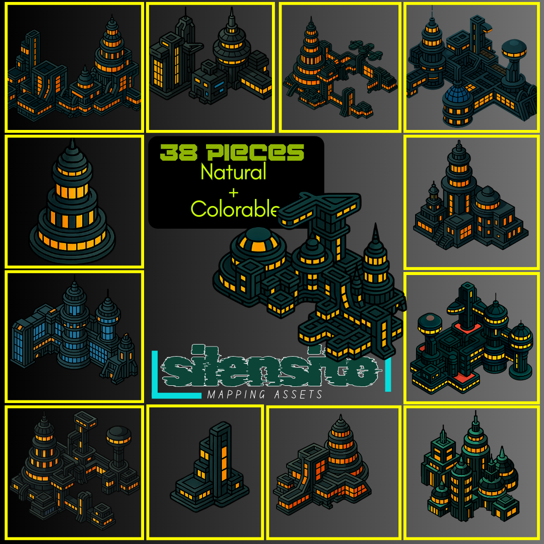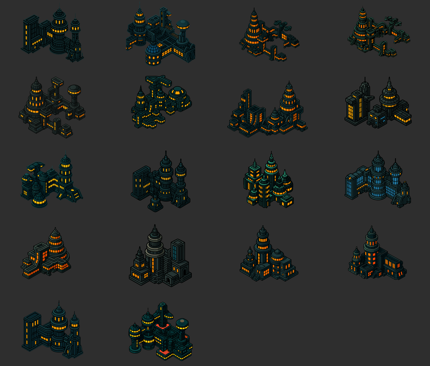 - 38 pieces of modular buildings for assembling varied layouts, from small clusters to expansive metropolitan grids.