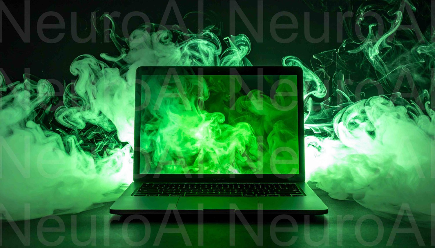 Modern laptop with vibrant green smoke effect