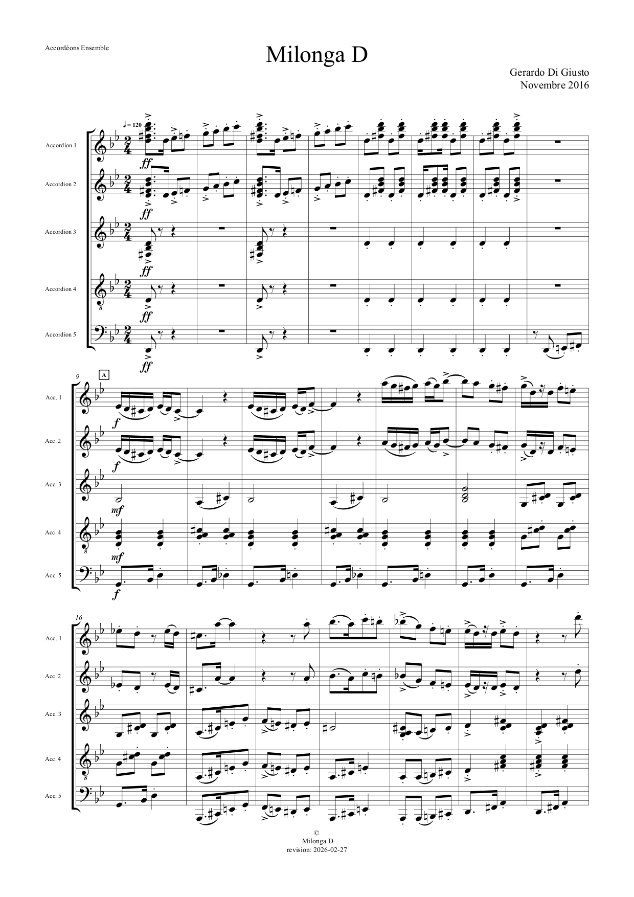 Milonga D version ensemble d'Accordéons