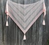 Romantika combines fingering (4ply) and laceweight (2ply) yarn to create a shawl that is as light and cosy, as it is warm and generously sized. It features lots of relaxing striped garter stitch interspersed with contrast panels of textured dots that will keep you engaged while knitting, and is floaty and pretty to wear.