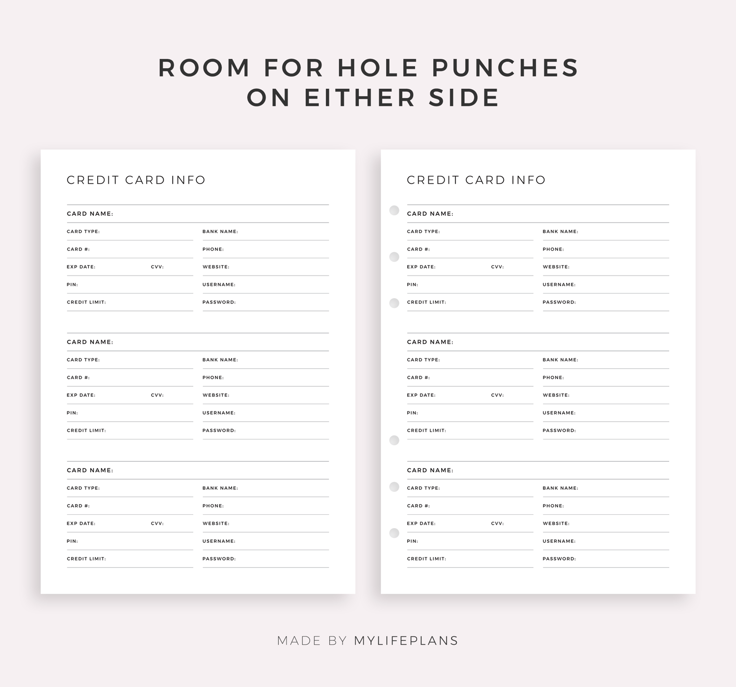 Credit Card Information Tracker, Printable & Fillable Template, A4/Letter Size