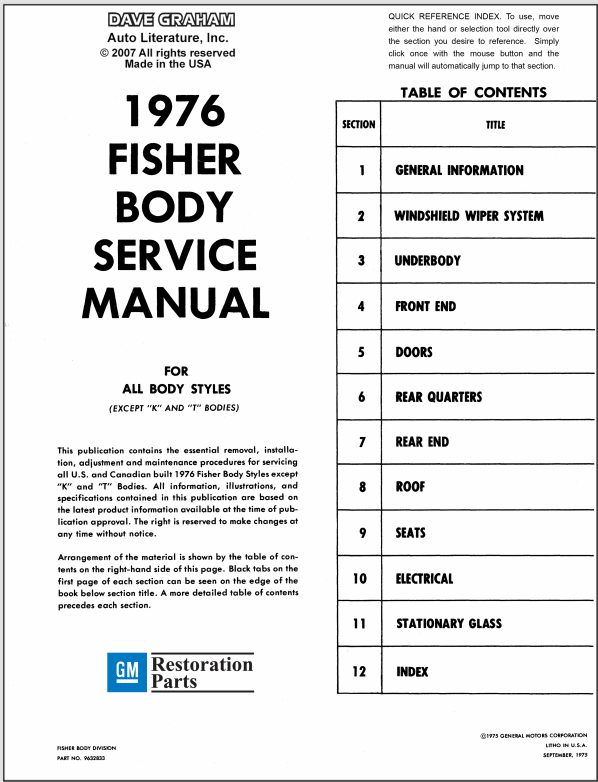 1976 - Fisher - Body Service Manual - Part No. 9632833