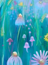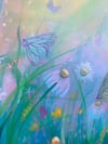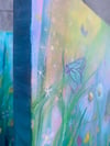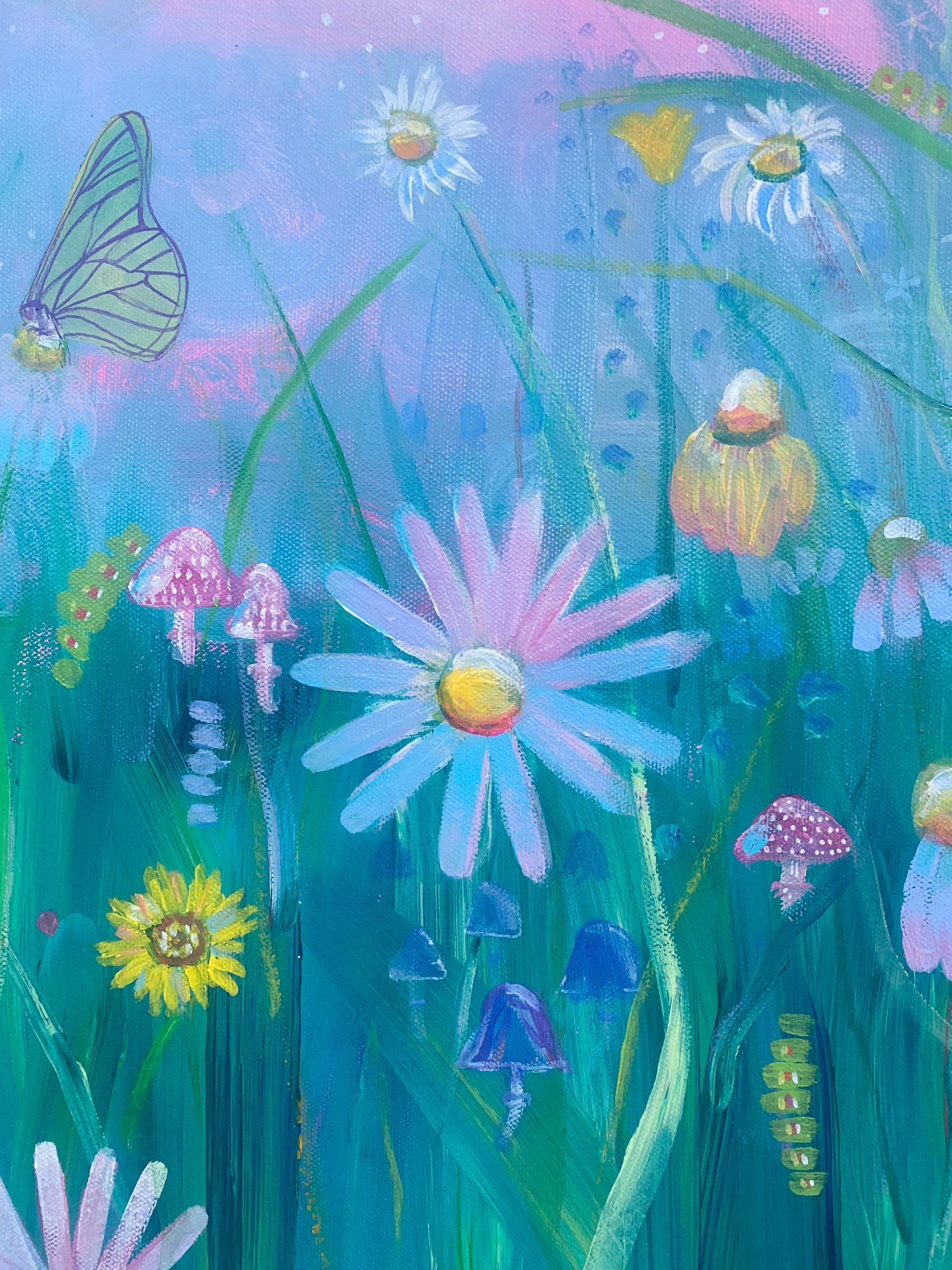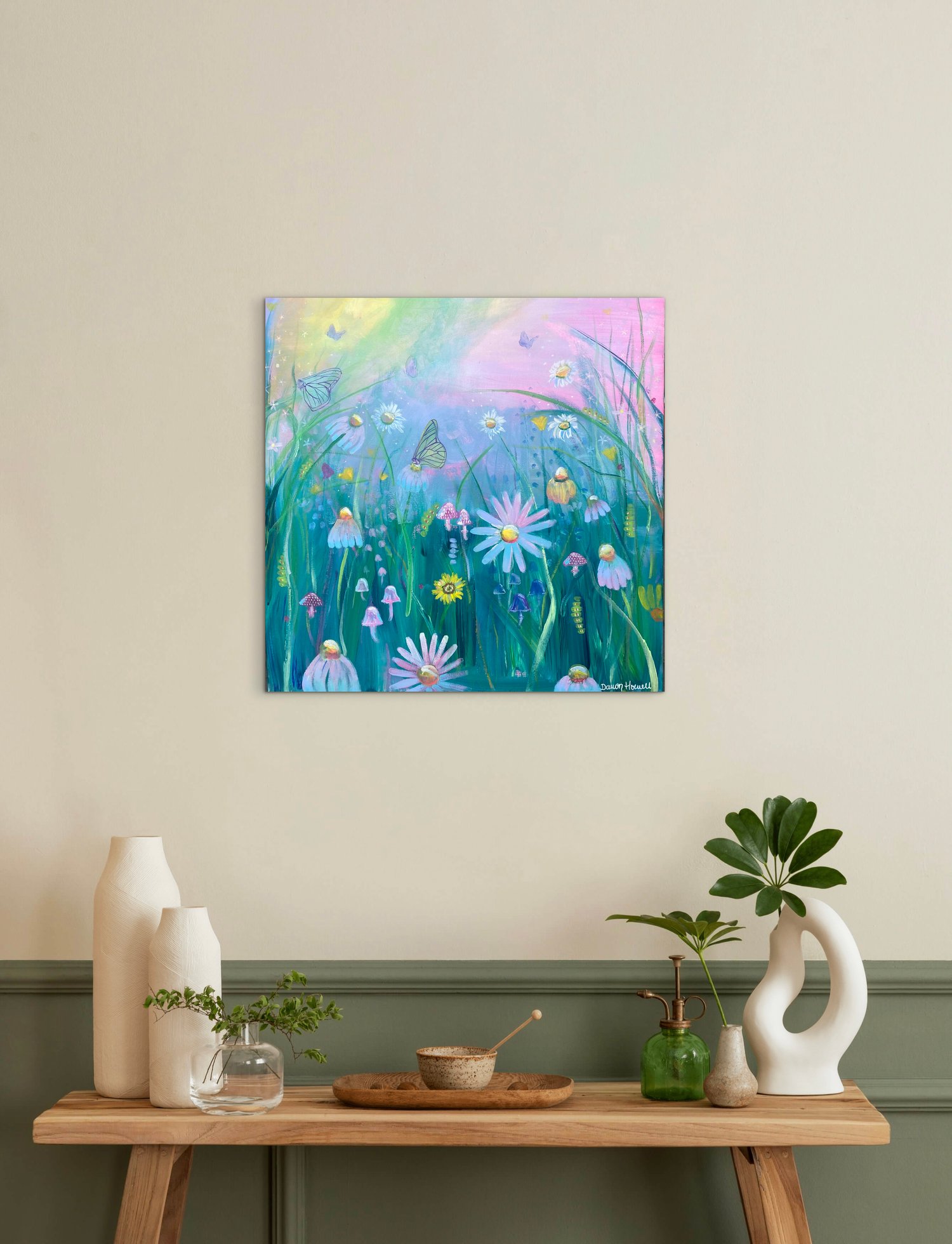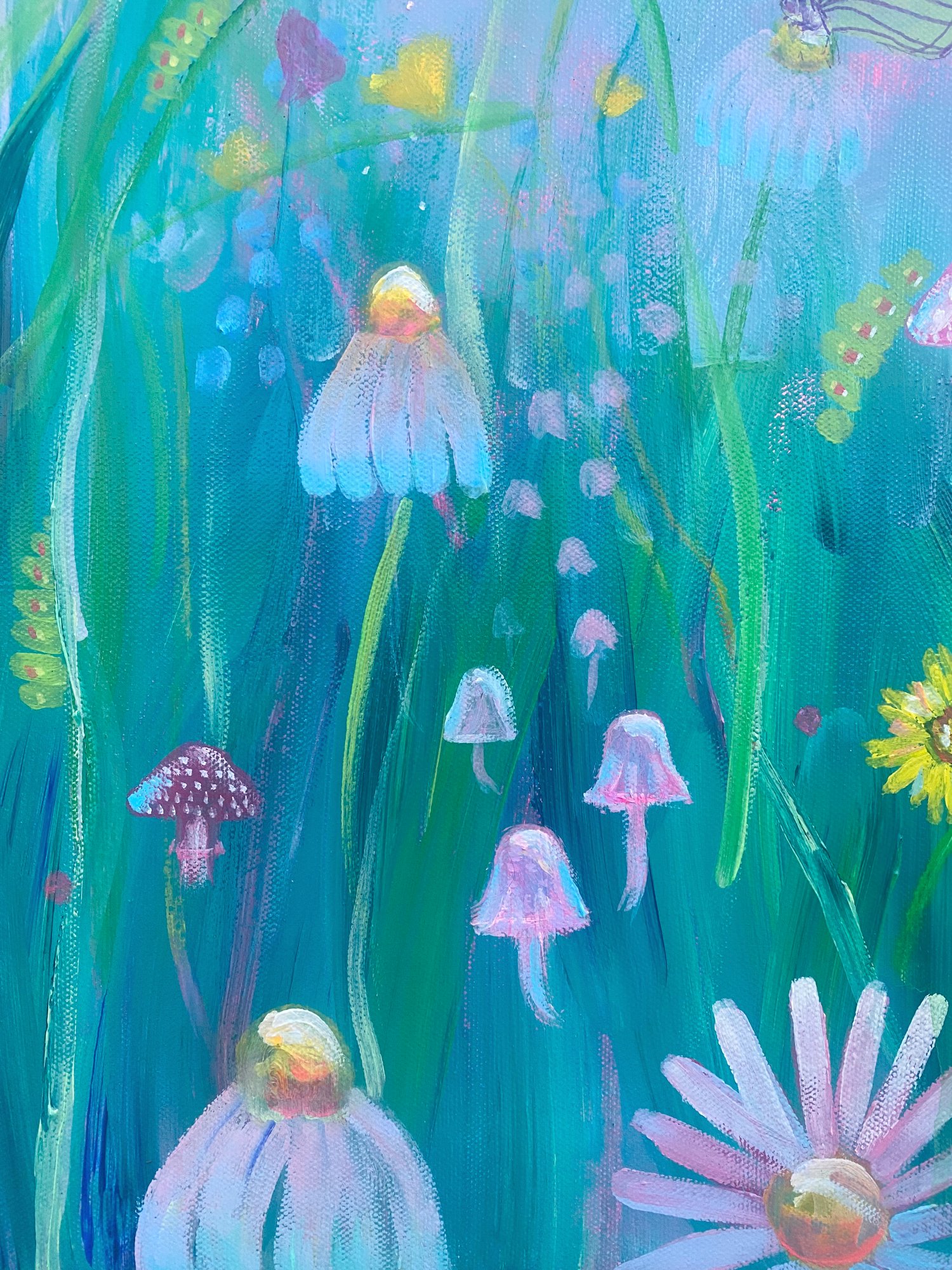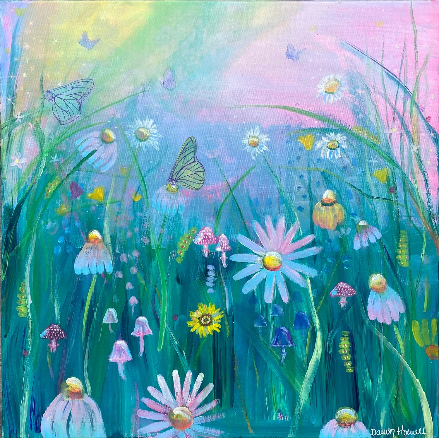 Sometimes the most radical thing you can do is go outside. "Step Outside" is a gentle nudge — an invitation wrapped in color and light to leave the noise behind and remember what it feels like to simply be in the world. Soft pastels layer over acrylic to create a dreamlike atmosphere that makes you want to take a breath and open a door.