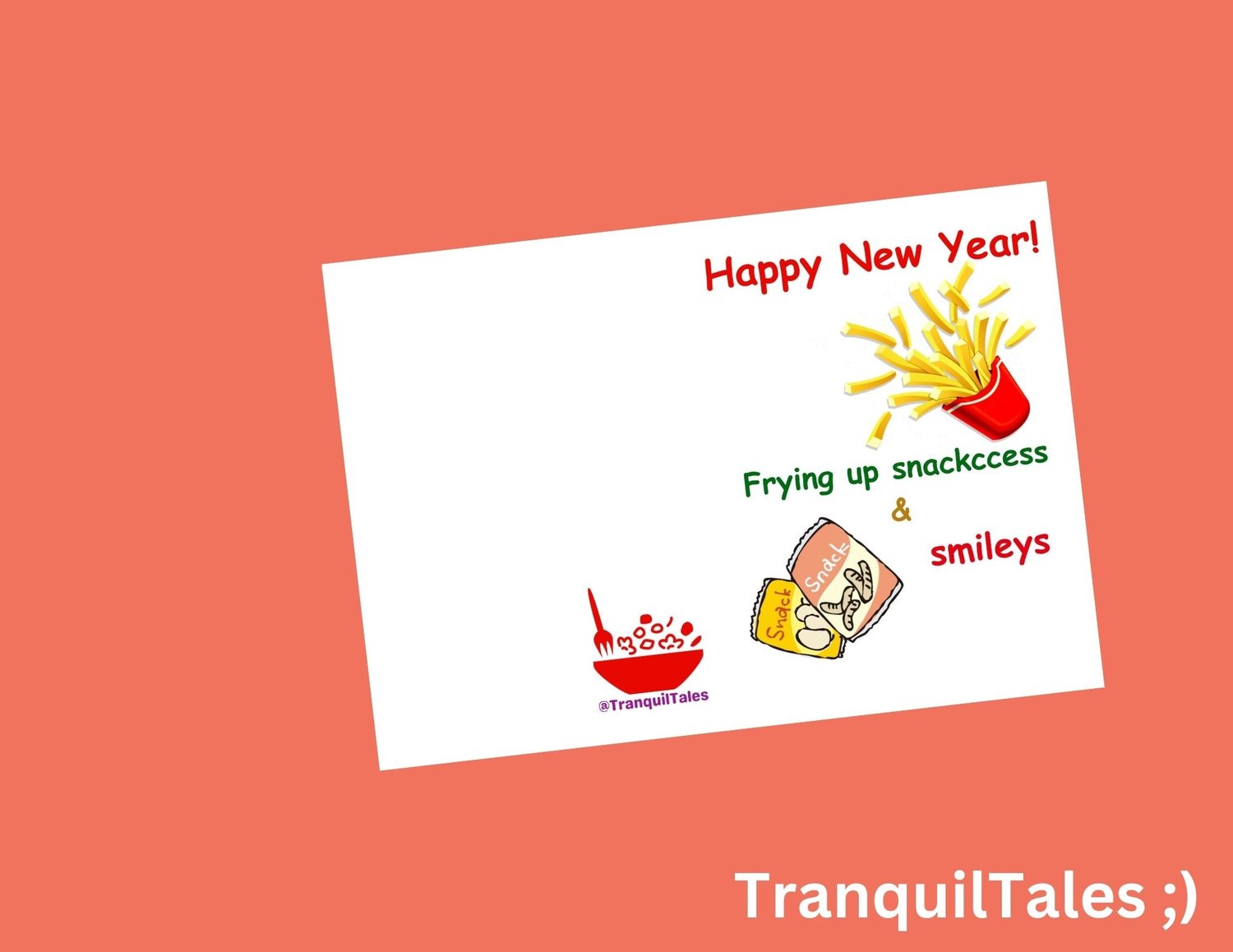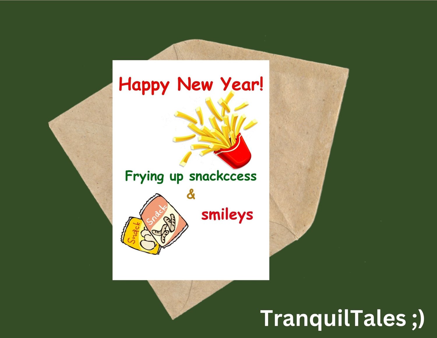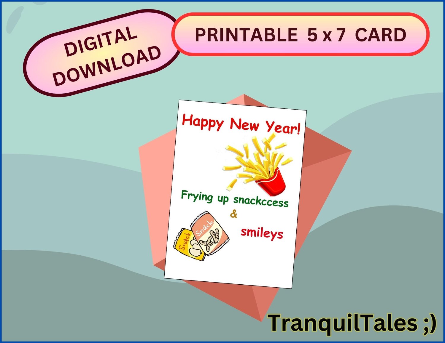 Happy New Year! Frying up snackccess & smileys Card - 5" x 7" inches - New Year card - PDF File