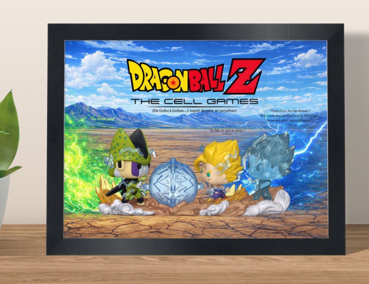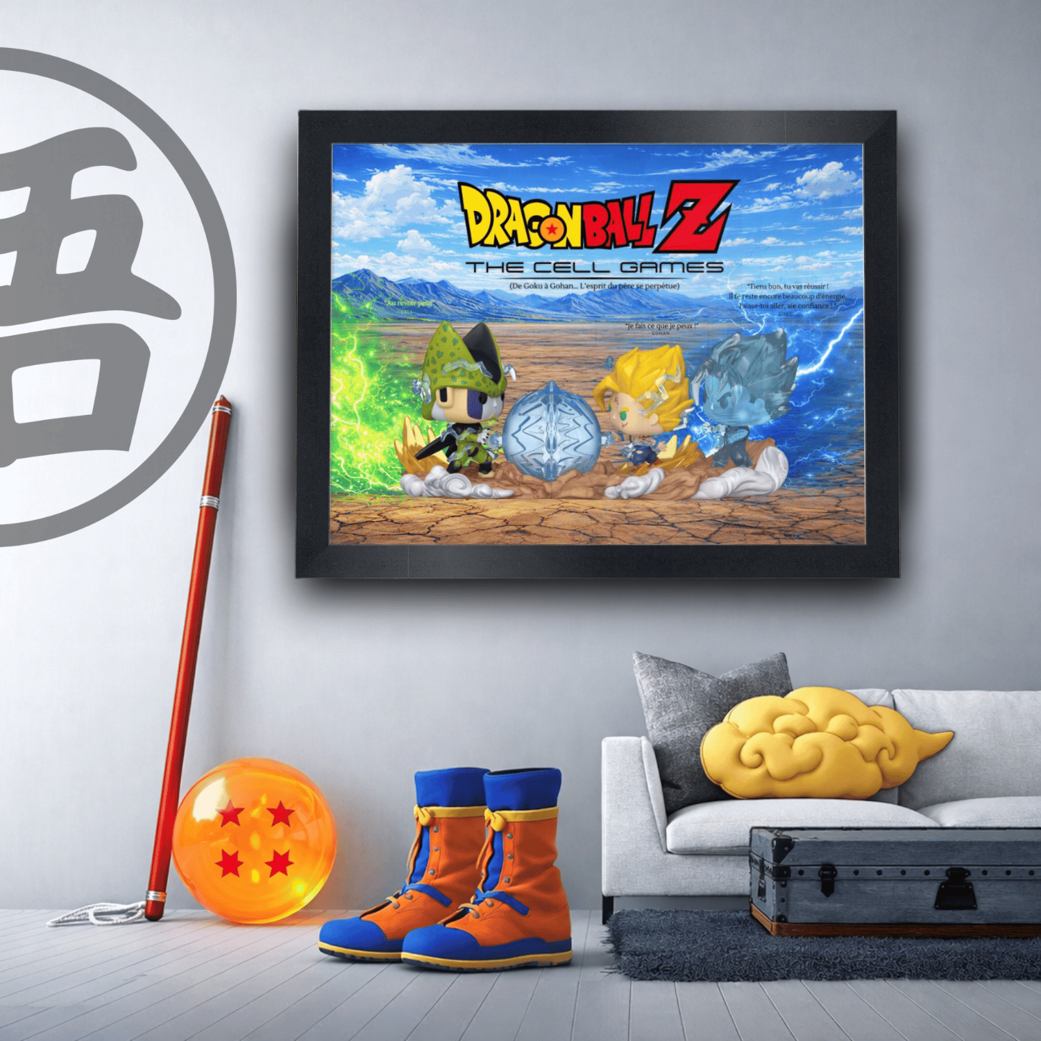 🔥 Affiche numérique compatible avec les Funko Pop Dragon Ball Z – The Cell Games – Format 30x40 cm 🔥