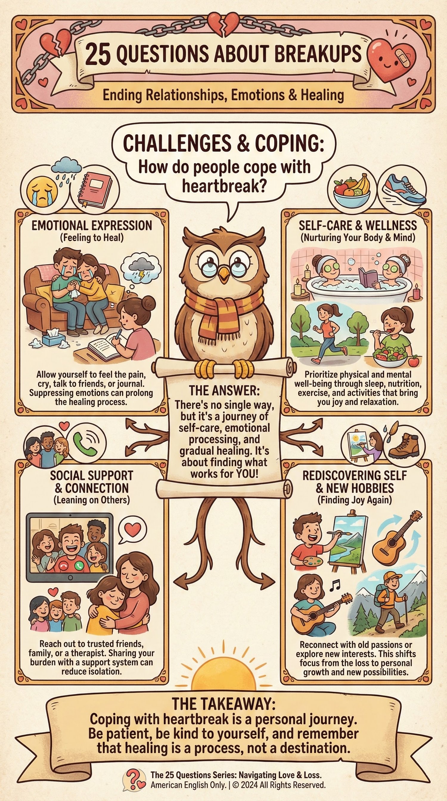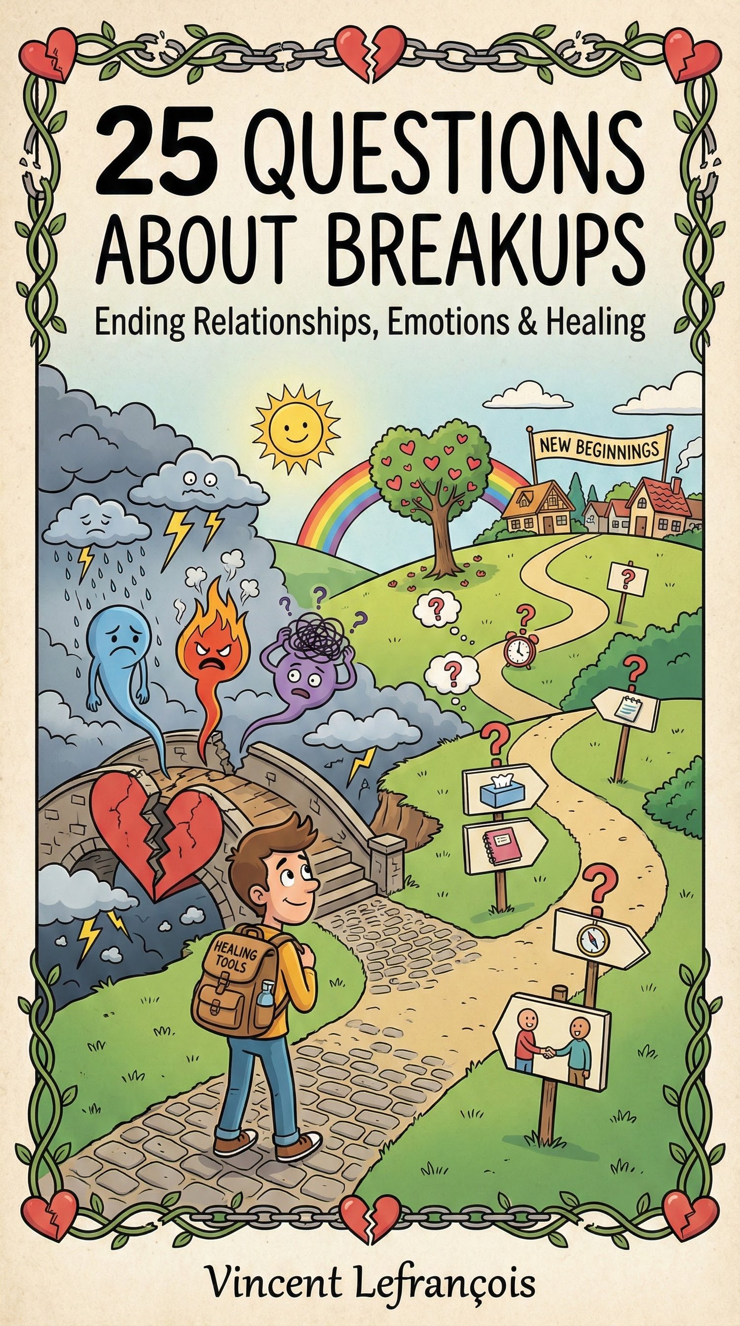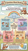 25 Questions About Breakups is a beautifully illustrated educational book that explores the emotional, psychological, and relational dimensions of breakups.