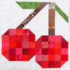 A scrappy cherry quilt block - makes a great pillow or wall hanging! Part of the Fruit Salad Series by Katie Mae Quilts.