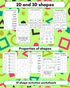2D and 3D shapes worksheets - includes: