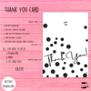 This is a cute modern thank you card that can be used for any occasion! This card measures 5"x7" (12.7x17.8 cm) with a matching envelope template. The design features black dots on a white background with a modern font. The back of the card has coordinating polka dots as does the envelope (see photos). There is also a matching Baby Shower Invitation card sold separately in my shop. You can send this card in the mail or digitally---both files are included with your purchase!