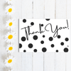 Thank you card featuring Blk/Wht Dots in a fun modern pattern. 5"x7" card w/envelope template included. Just download, print, and cut!