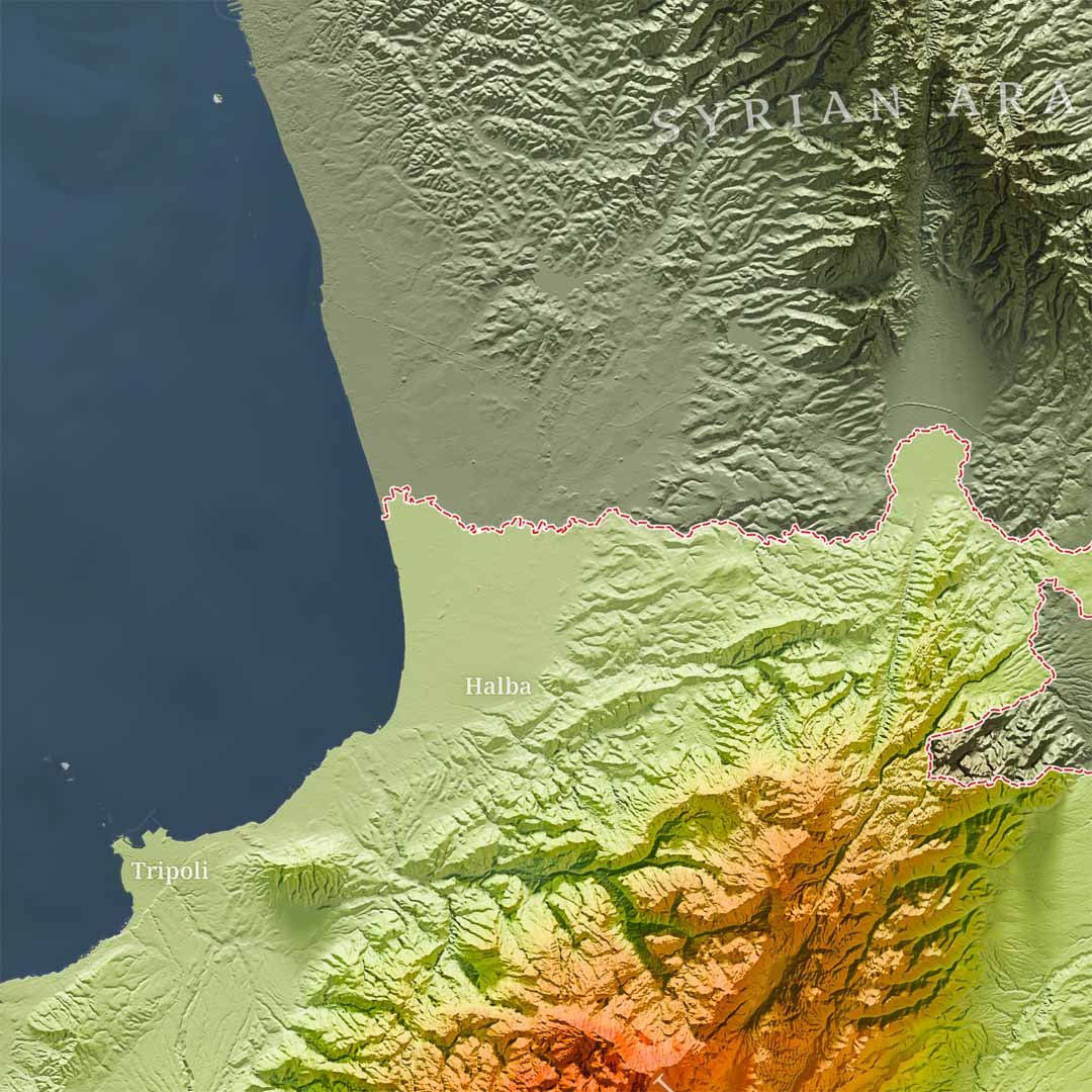 Shaded relief map of Republic of Lebanon, a sovereign Christian majority country in the Middle East.