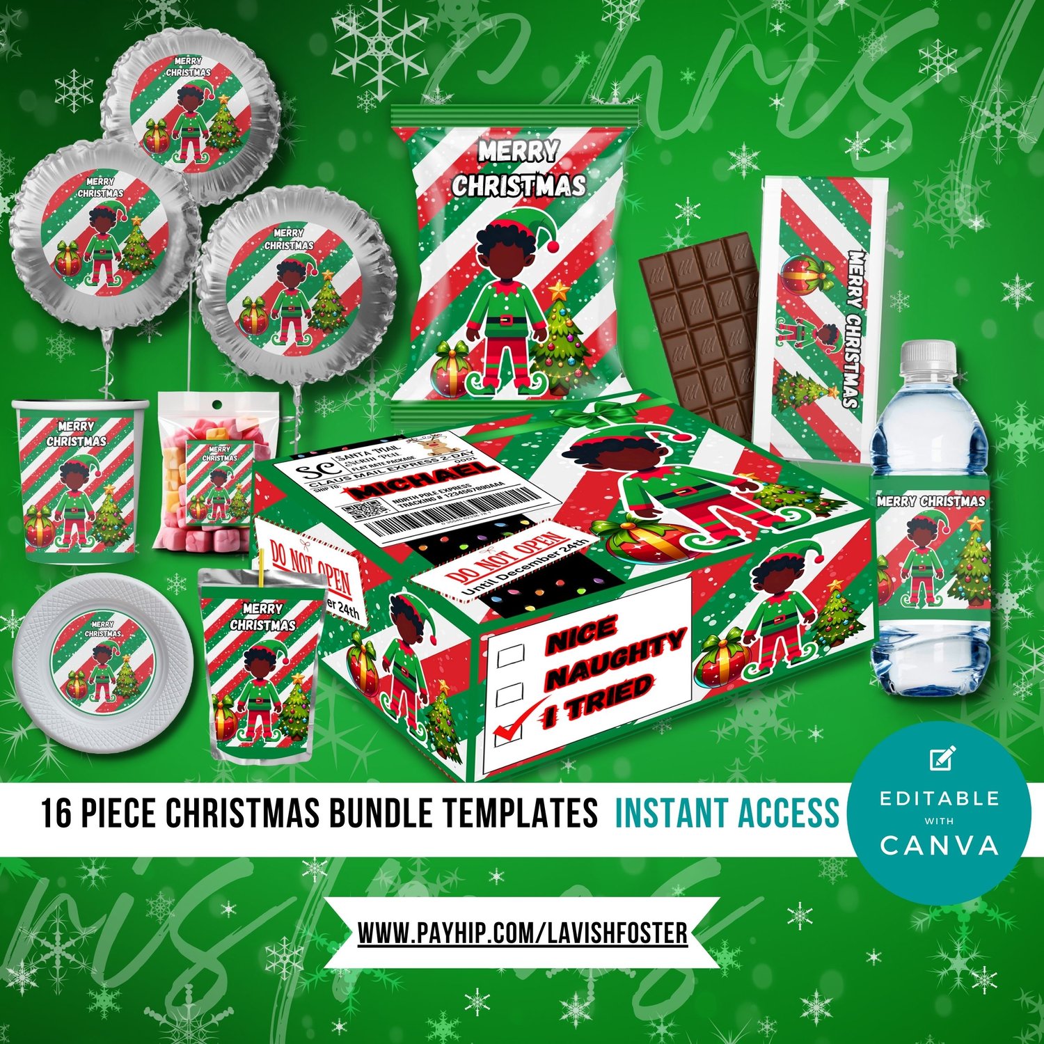 Boy Elf Theme Party Bundle, Christmas Party Bundle, Black Elf Christmas Party Package