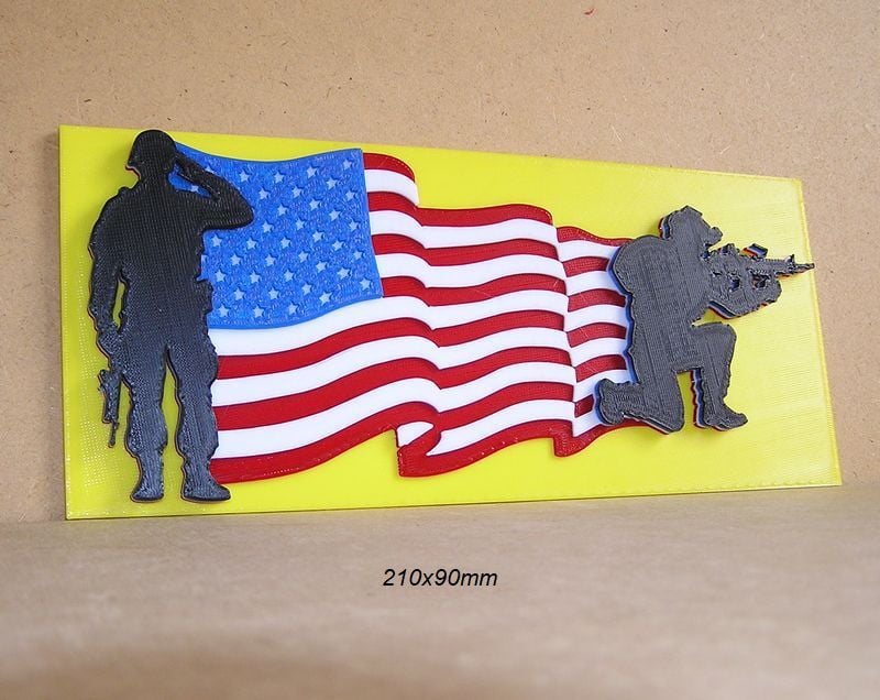 Poster, sign, military shields and flags, these STL and Gcode files have been created to be printed in various colors with any FDM type printer. The color changes have been made with the Elegoo Neptune 3 Pro printer, but they can be printed on any printer.