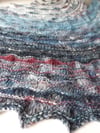 While the sample of the Stormy Seas shawl was knit in handspun yarn, it can of course also be knit with a commercial yarn. For a similar result, use fingering or sport weight yarn. It can be made as small or large as you like, just knit until your yarn runs out.