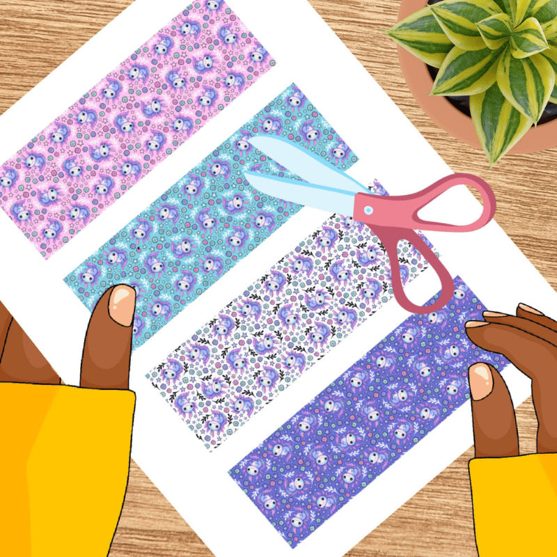Use them to mark your favorite pages, gift to a friend, or include in a themed care package! Put a hole punch at the top and add your favorite fringe, tassel or charm.