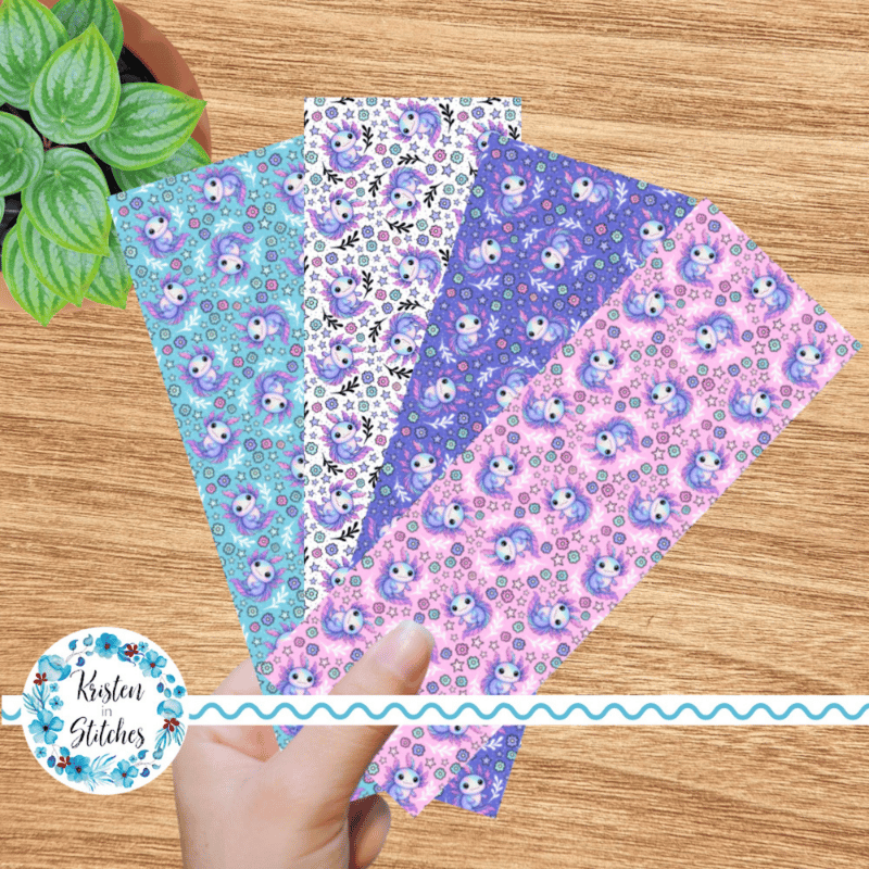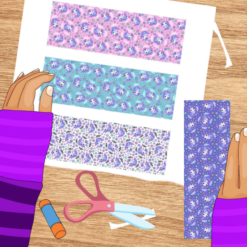 Adorable baby axolotl print and cut bookmarks, great for sleepover crafts, classroom prizes, quick busy activities and reading incentives.