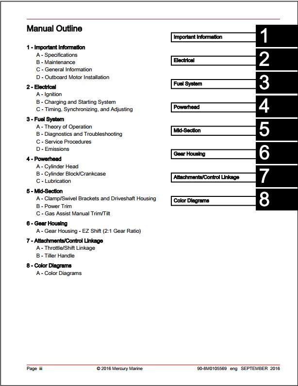 2016 Mercury 30 40 3 Cylinder FourStroke Service Manual