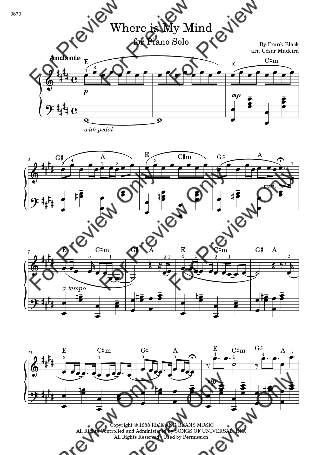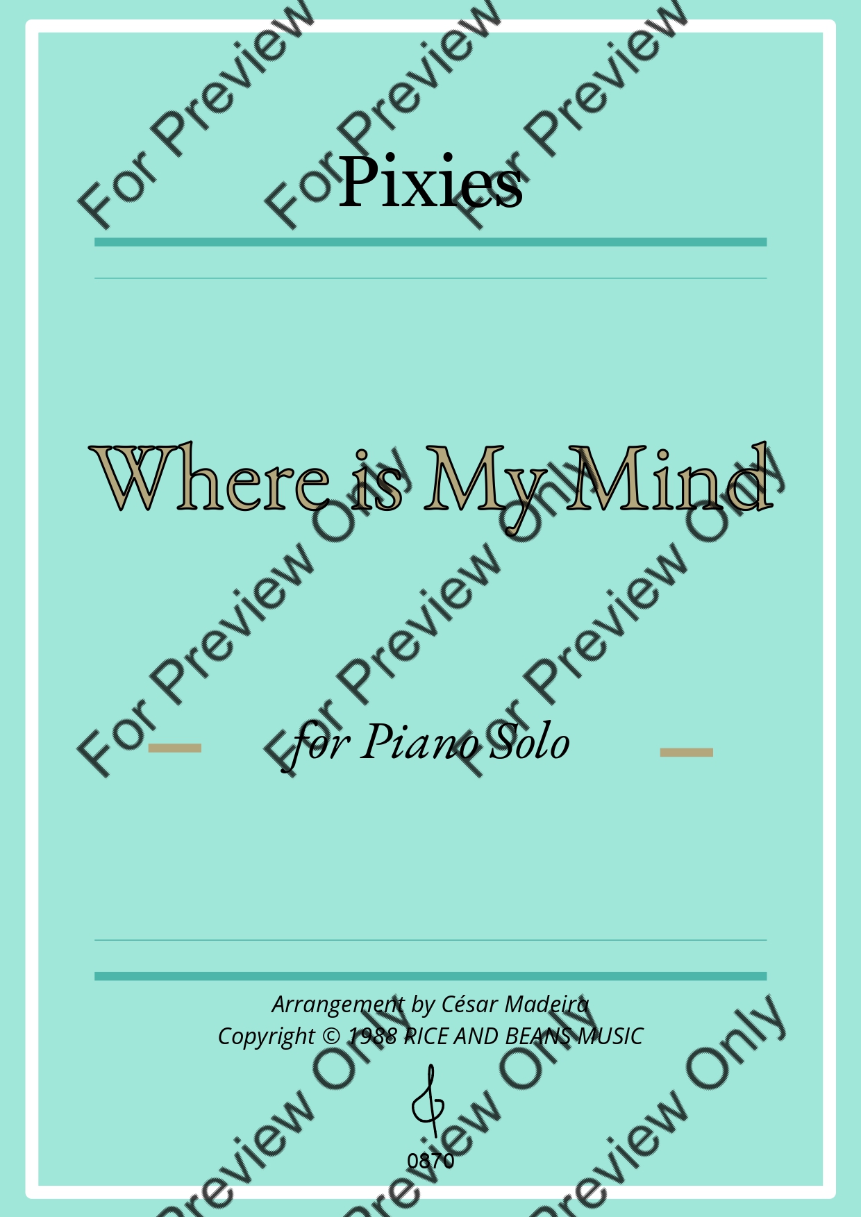 Where Is My Mind? by Pixies. Arrangement for Piano Solo. With Full Score. Have fun!
