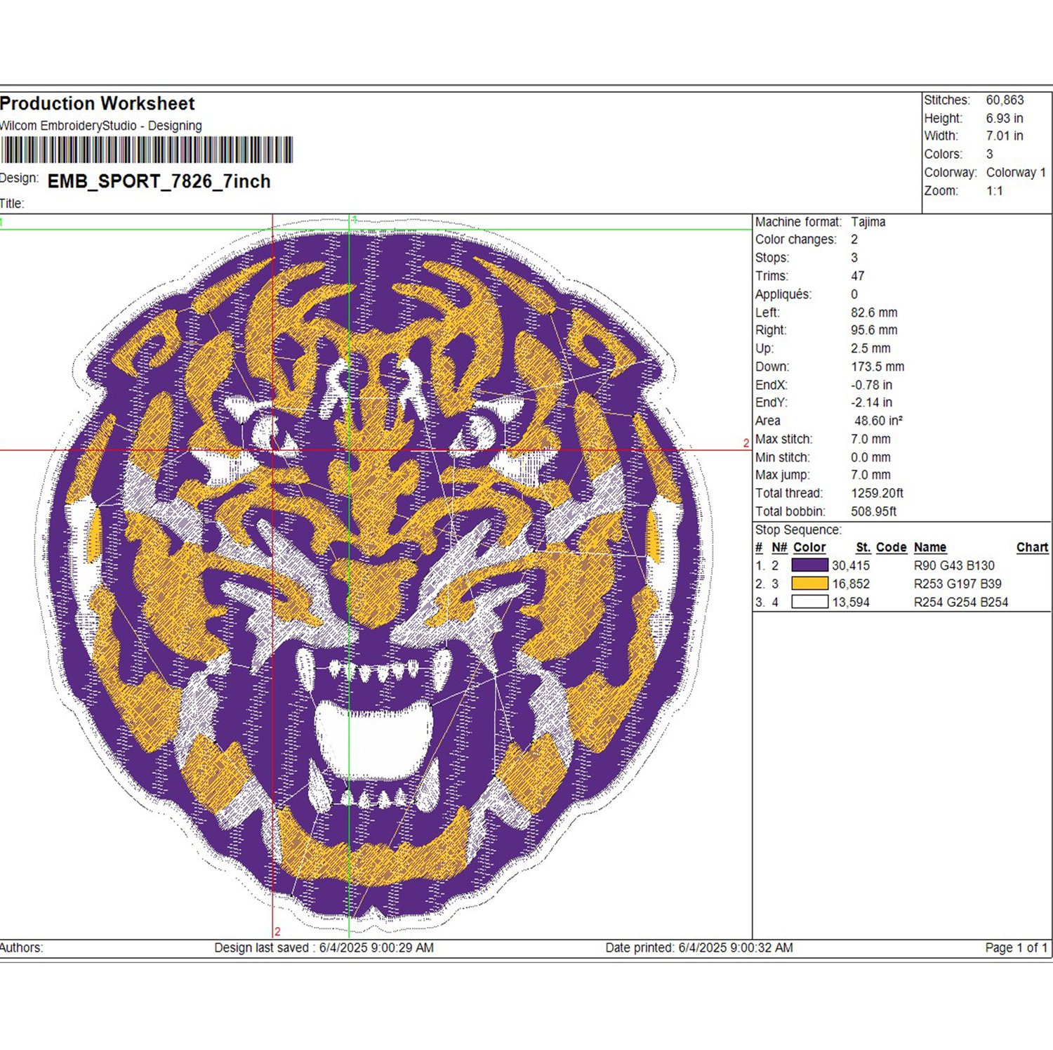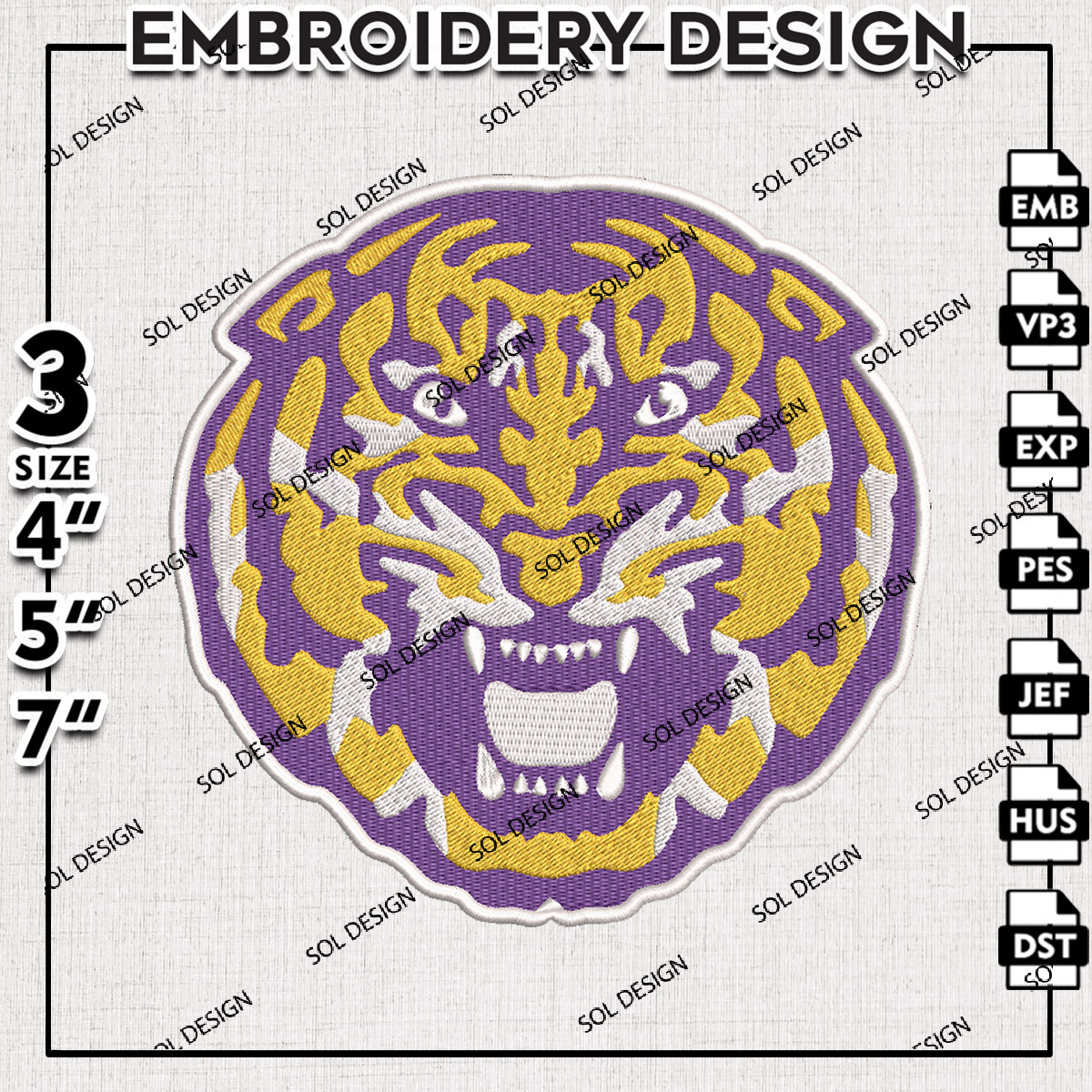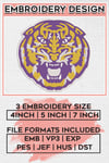 LSU Tigers NCAA Football Team Head Mascot Logo Embroidery Designs, NCAA LSU Tigers Machine Embroidery Files, NCAA Logo embroidery designs, NCAA LSU Logo, Digital Download