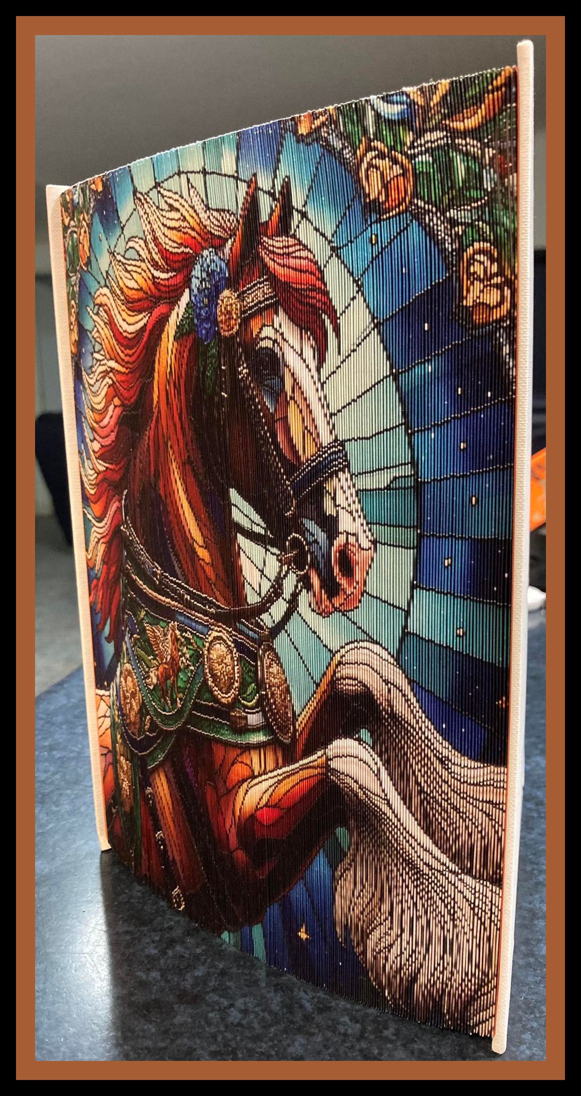 This pattern is based on a 23.5 cm book. Your book will need at least 499 pages. All books are tested , we believe we should show them completed and not super impose images on the books. If requiring a different height in the pattern, please contact us. Some different techniques are used to show what can be done with the pattern, depends on your level of expertise and knowledge as to how it comes out.