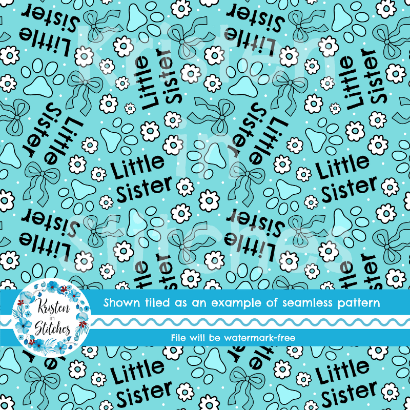 Little Sister Puppy Dog Paw Prints Seamless Pattern