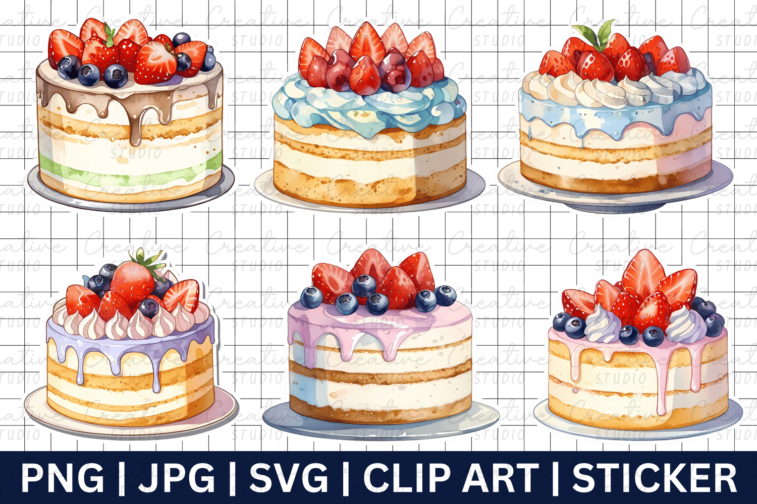 Strawberry Cake Design Sticker Clipart Sublimation