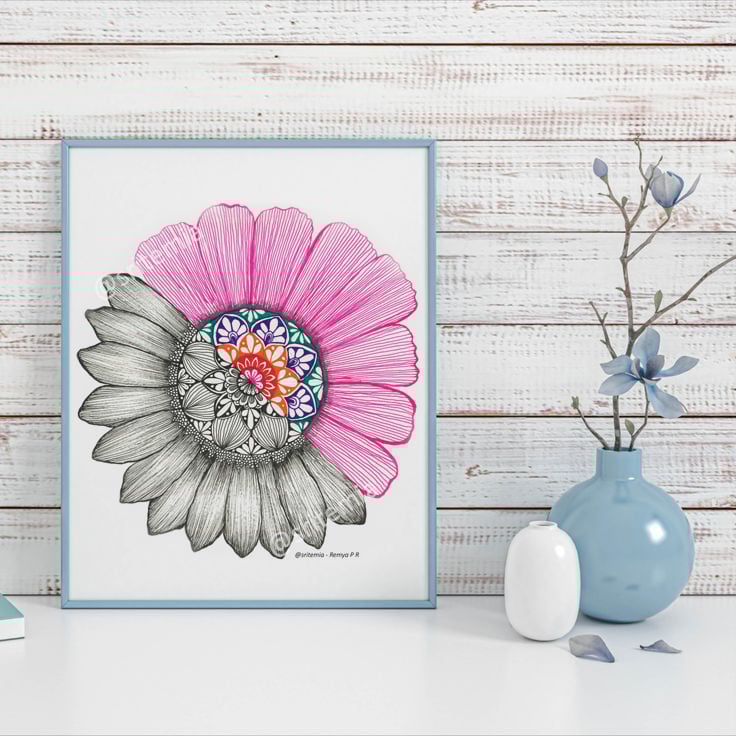 Enhance your home with this elegant hand-drawn mandala flower printable wall art 🌸