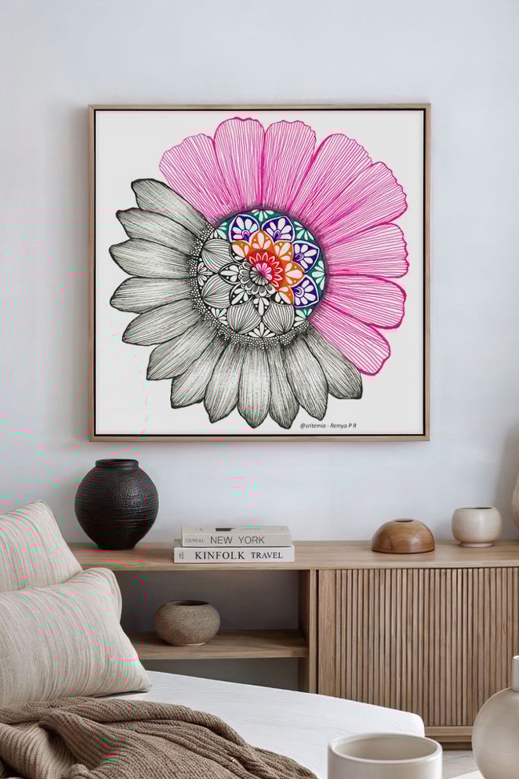 This detailed zentangle-inspired design combines bold linework with a balanced square composition, making it a perfect addition to modern, minimalist, and boho-style interiors. Whether you’re decorating your living room, bedroom, workspace, or creating a calming corner, this artwork adds a unique artistic touch.