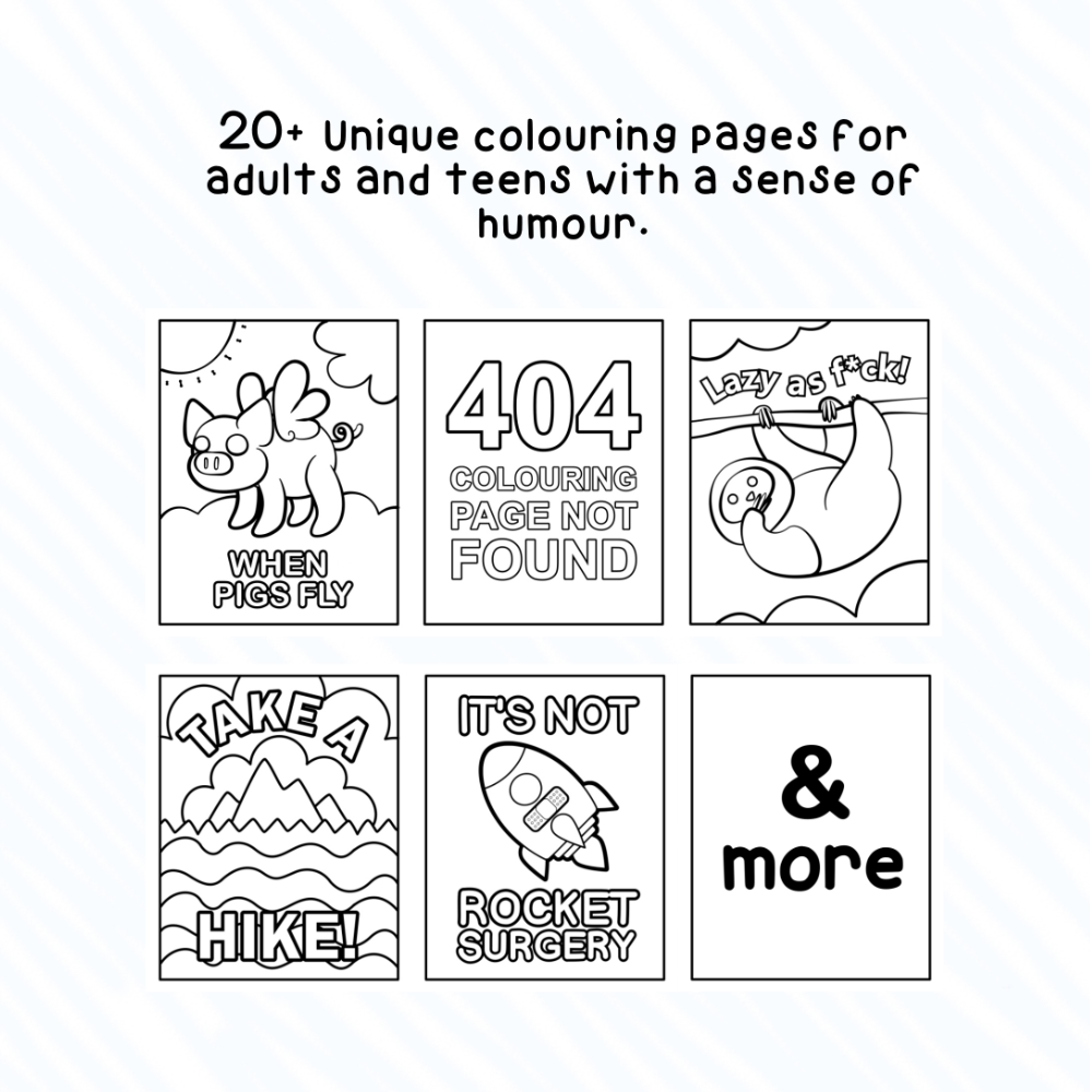 20+ Unique colouring pages for adults and teens with a sense of humour, carefully crafted and curated by Sarcastic Words. Grab your colouring pencils and get ready for a wild ride. Rated PG13 for some swearing.
