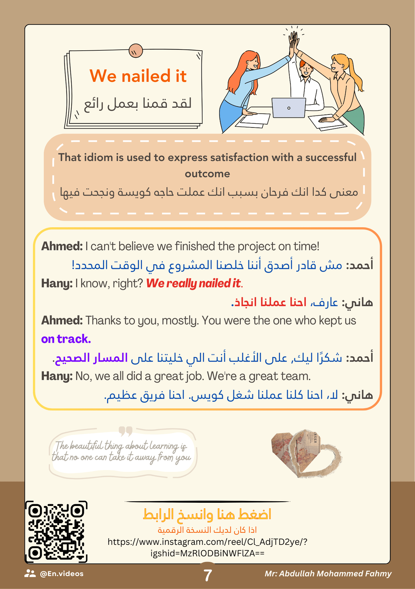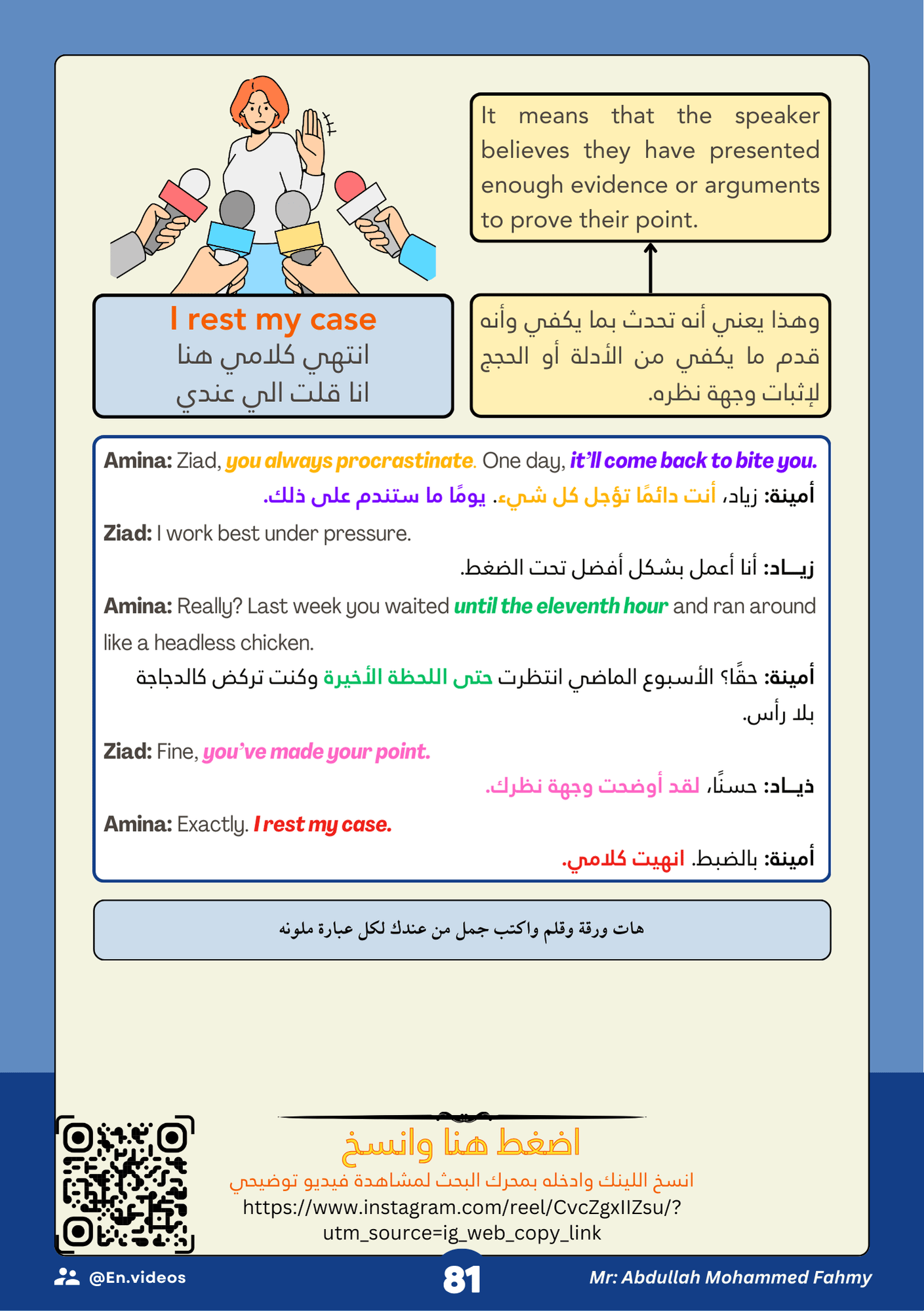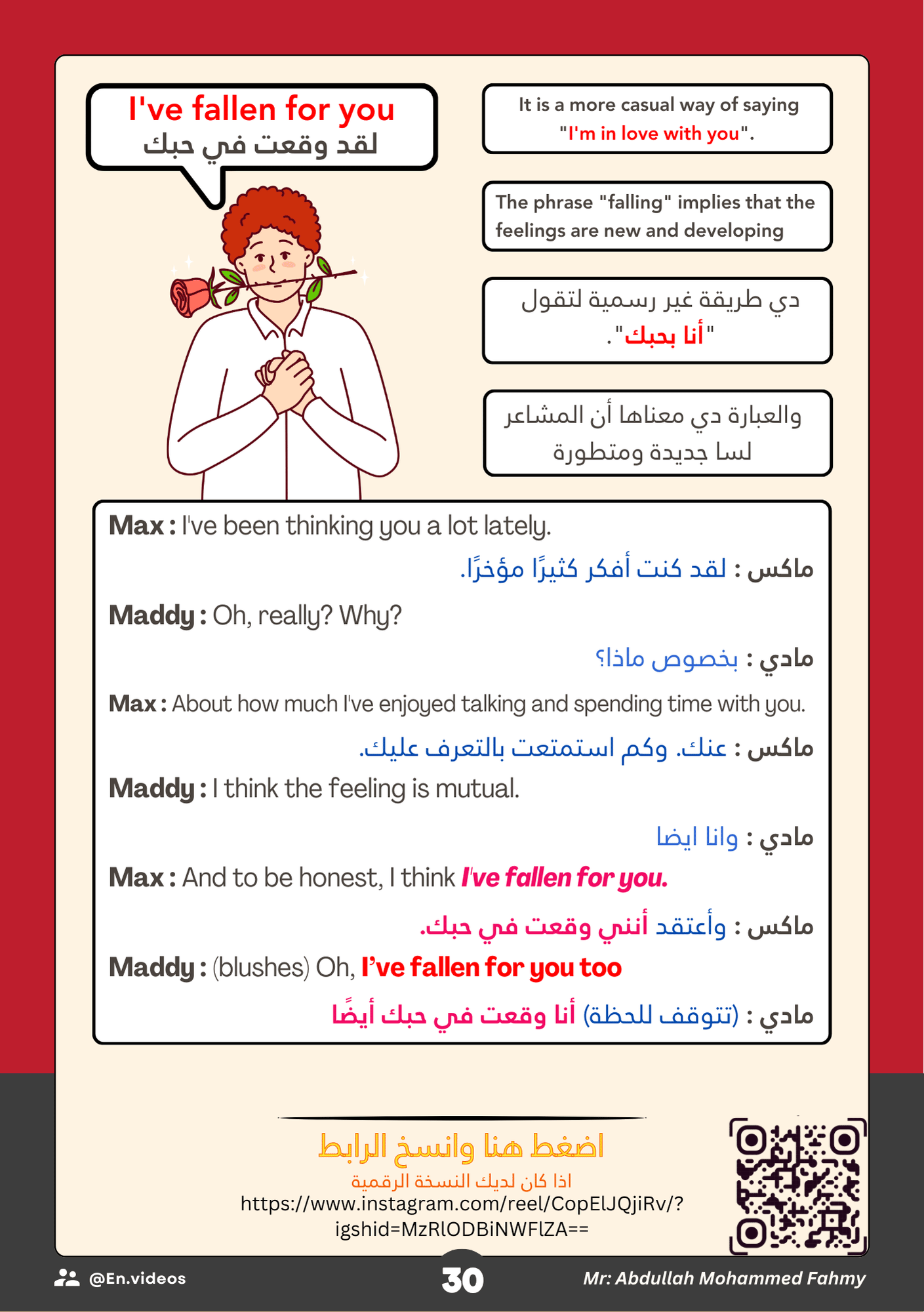 يمكنك ببساطة مسح الكود لتشاهد فيديو ينطق العبارة بالنطق الصحيح مع أمثلة حقيقية من مشاهد الأفلام.