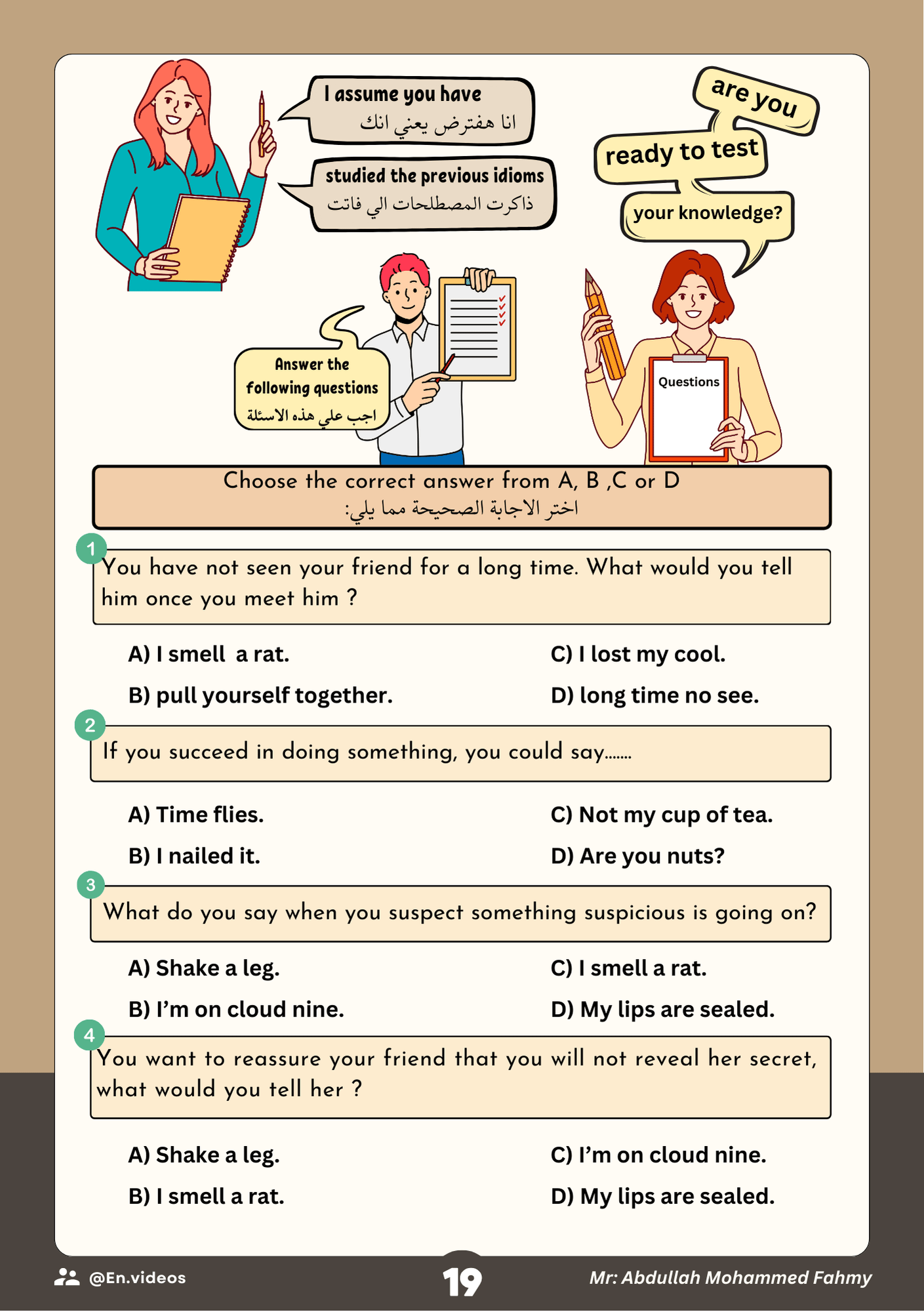 - العديد من التدريبات والاسئلة علي المصطلحات الموجودة بداخل الكتاب لتختبر نفسك متى اردت!