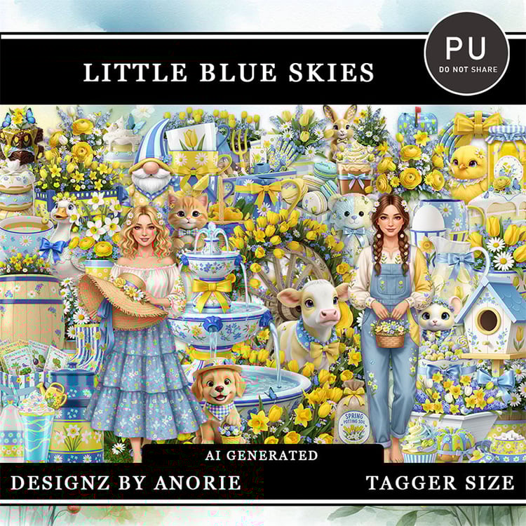 PU Tagger kit - papers 800x800 - Elements vary in size - AI Generated. The kit contains 113 elements and 21 papers.