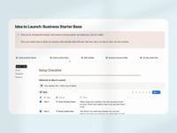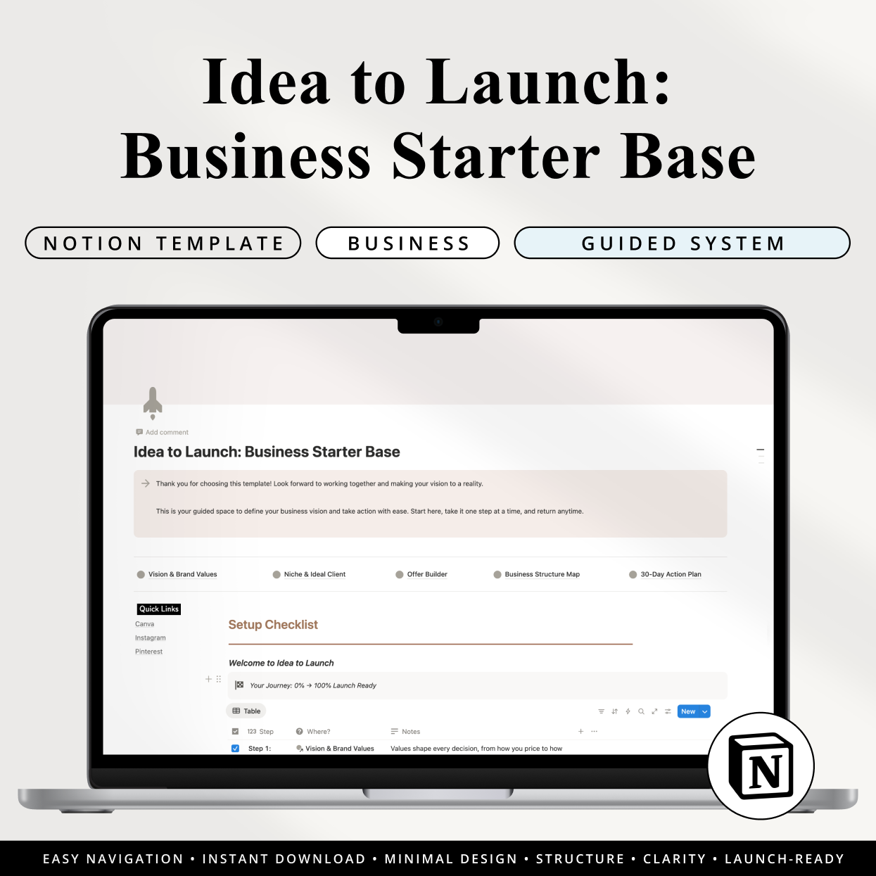 Idea to Launch: Business Starter Base is an all-in-one Notion planner designed to help you go from concept to first sale. Whether you’re a freelancer, coach, digital product creator, or small business owner, this workspace gives you clarity and structure from day one.