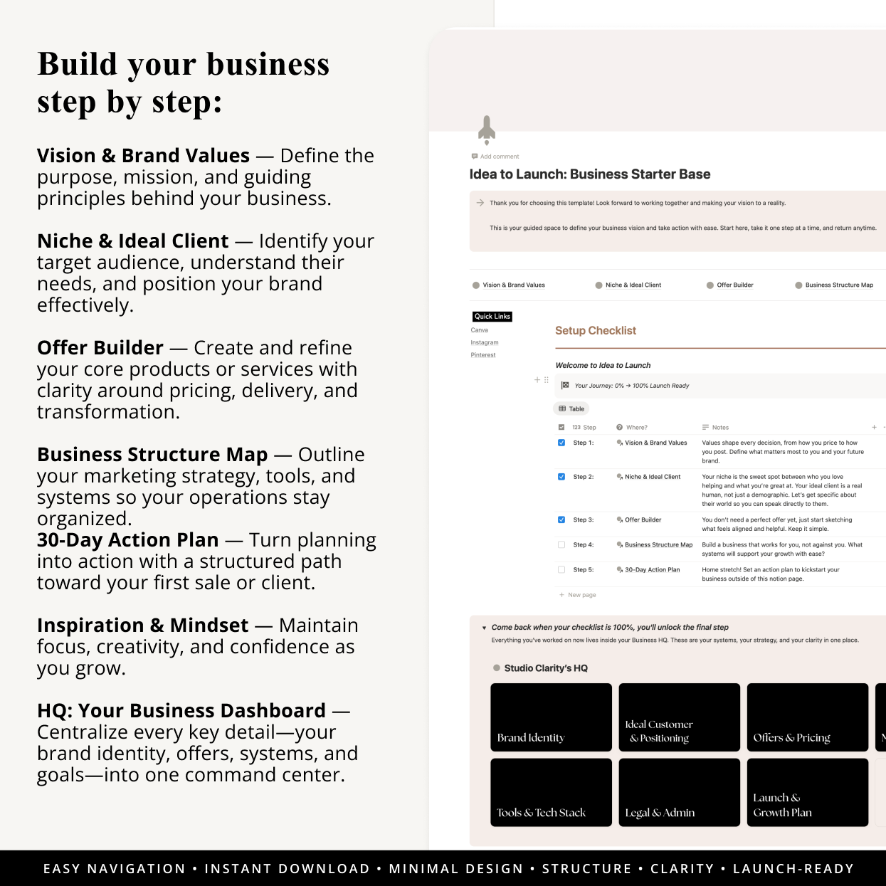 Idea to Launch: The Ultimate Business Planner | Notion Template for Small Business Owners, Entrepreneurs & Creators