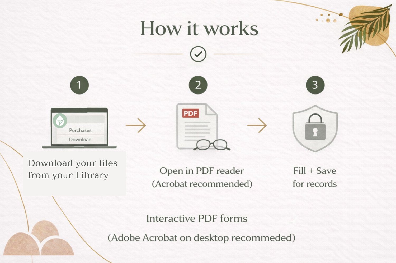 • Branded Interactive PDF – fill out on screen using Adobe Acrobat or any compatible PDF reader. Branding in the footer.