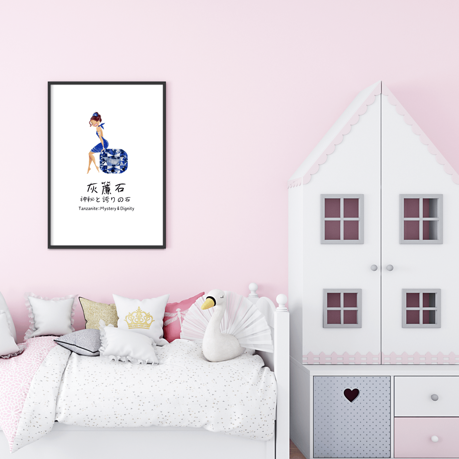 Printable December Birthstone Girl Wall Art, Japanese Tanzanite Quote Room Decor