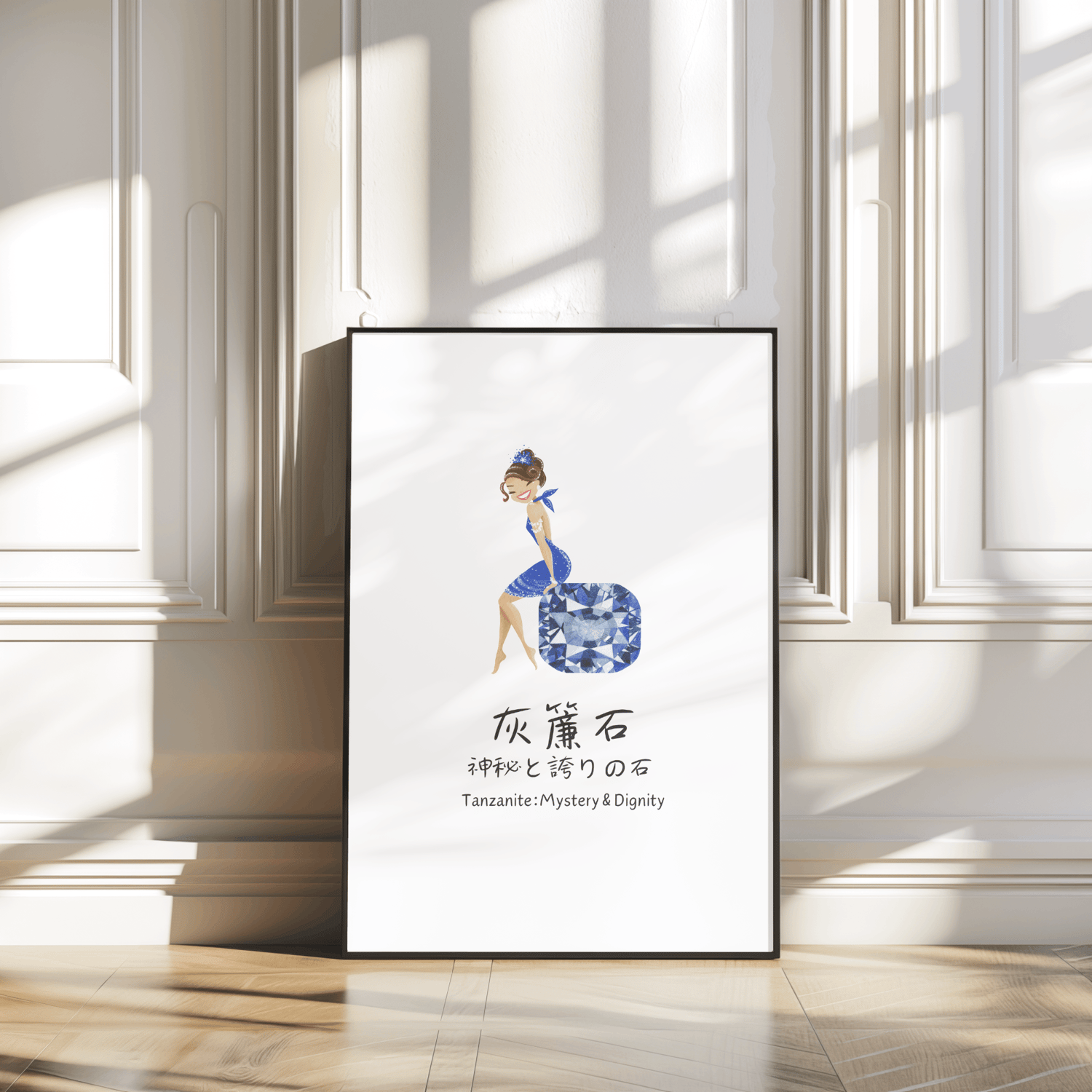 This printable wall art combines stylish design with personal significance. The artwork features a beautiful illustration of a woman accented by December's birthstone, Tanzanite. I’ve also included the special meaning of Tanzanite in both English and Japanese, making this print truly unique.