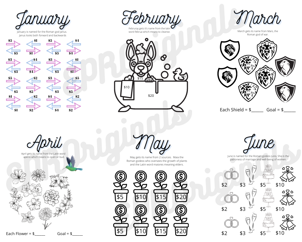 This litle savings challenge book will set you up well for your 2023 savings goals and also gives you a "leap" start into 2024. There are 15 savings challenges as well as a small scratch off challenge. This little book is 4.25 inches by 5.5 inches and offers you 15 challenges to help you save.