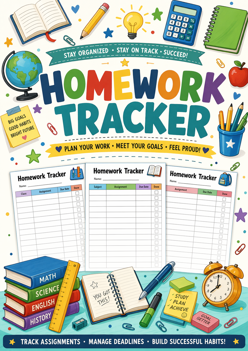 Help students stay organized with this Student Homework Tracker Printable! Track assignments, deadlines, and study sessions easily. Perfect for back-to-school! Instant download.