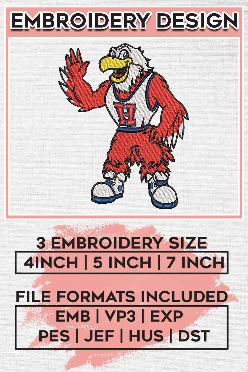NCAA Hartford Hawks Team Mascot Logo Embroidery Designs, NCAA Hartford Hawks Machine Embroidery Files, NCAA Logo embroidery designs, Ncaa Hartford Logo, Digital Download