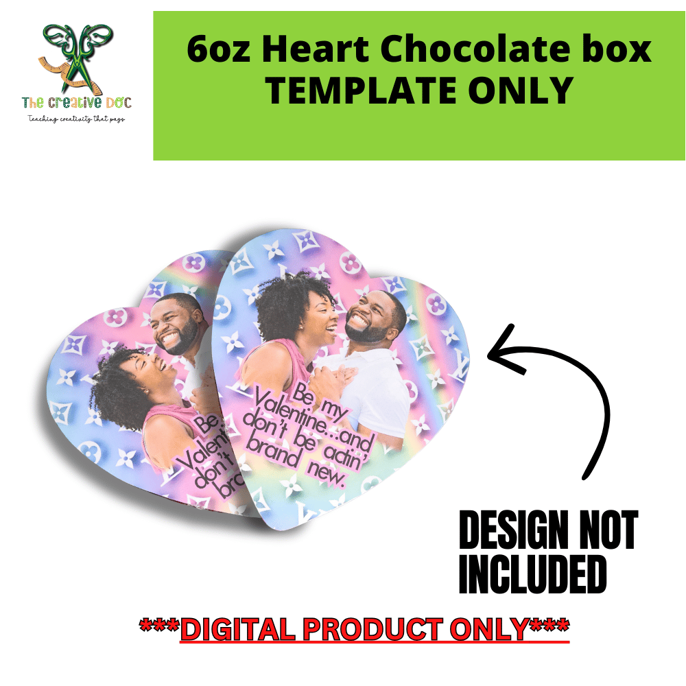 - 1 editable 6oz Heart Chocolate Box template