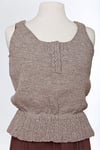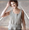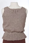 Breeze through the day in this romantic blouson bodice. Eyelet rib creates a peplum below a waist-defining casing concealing an elastic band for a flattering fit. The easy drape of stockinette rises to the eyelet lace panel of the neck placket. Careful details like the echoed lace panel at the nape of the neck and knitted in trim that’s informal, but polished make this top easy to dress up or down.