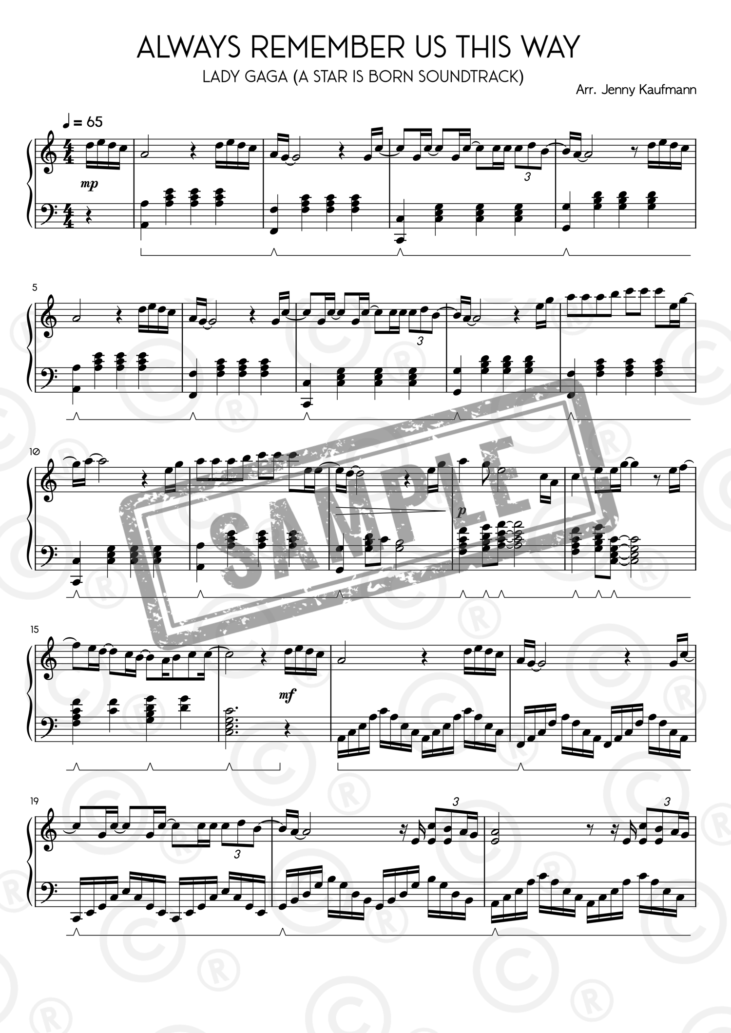 Always Remember Us This Way - Lady Gaga - Sheet Music